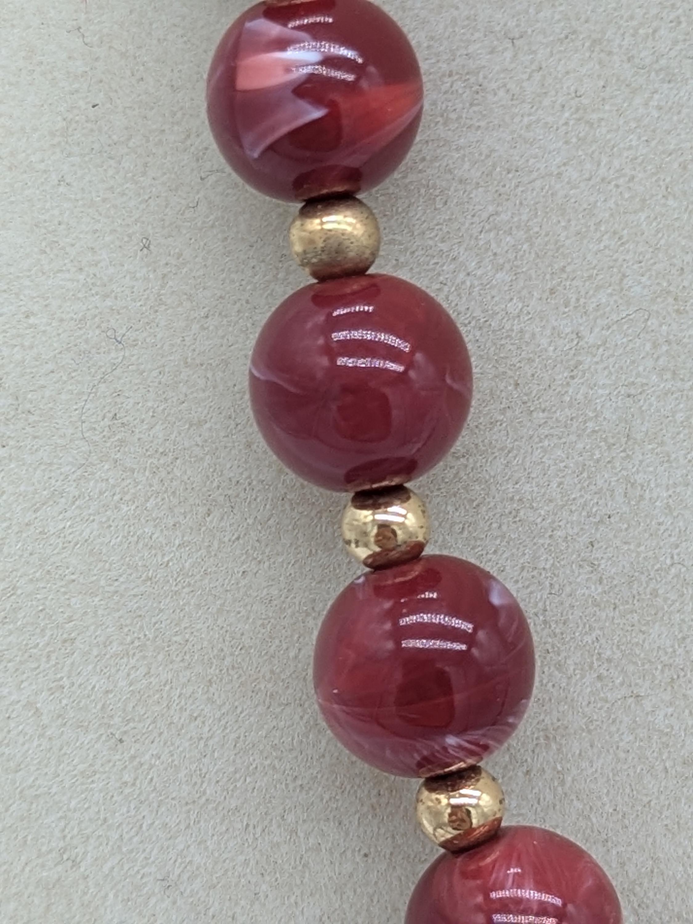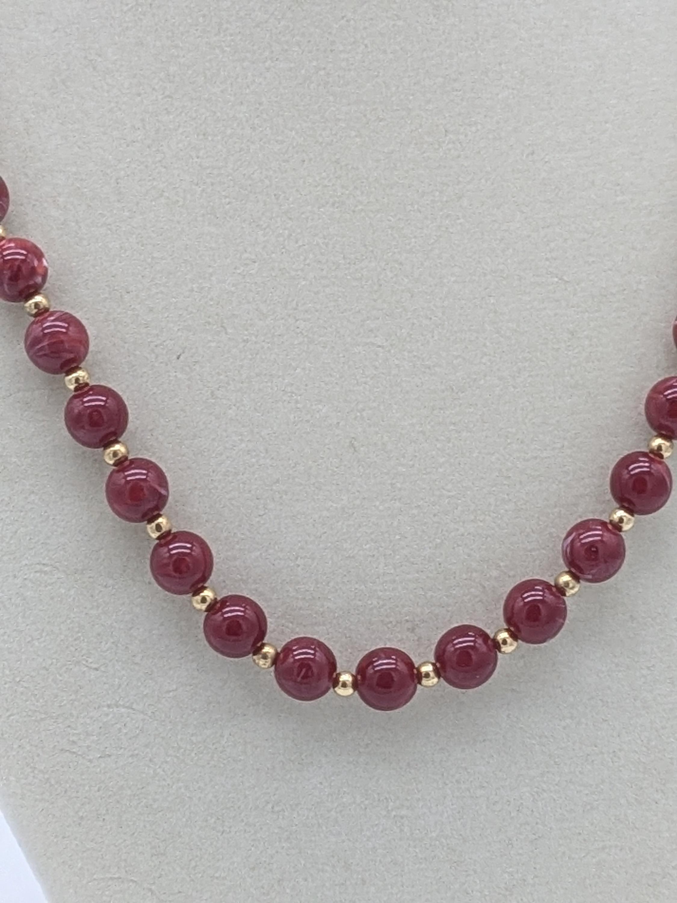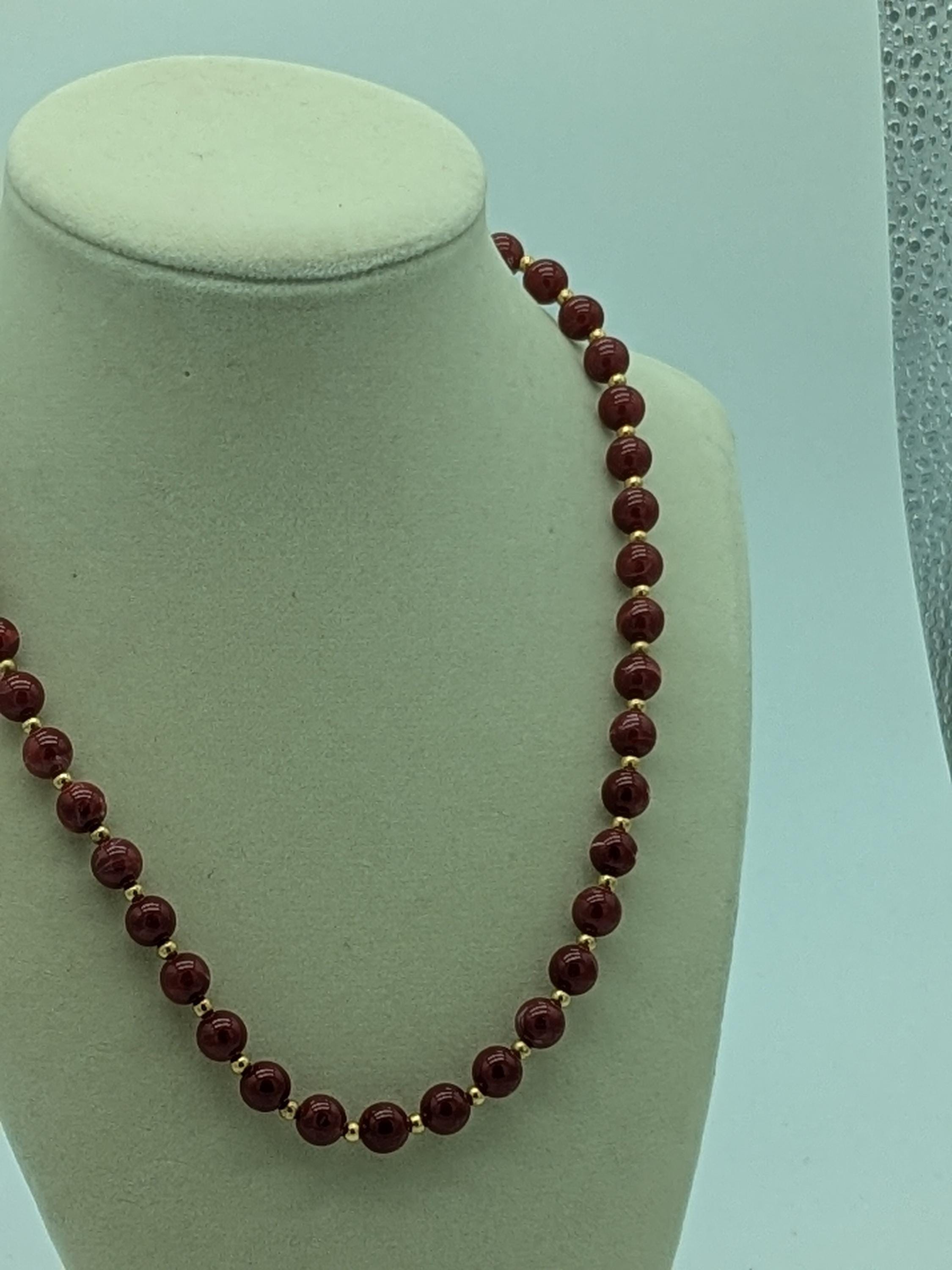 This timeless maroon bead necklace features smooth, glossy round beads accented with tiny metallic spacers for a refined touch. Simple yet sophisticated, it’s perfect for everyday elegance, office wear, or layering with other favorites. Lightweight and comfortable for all-day style.