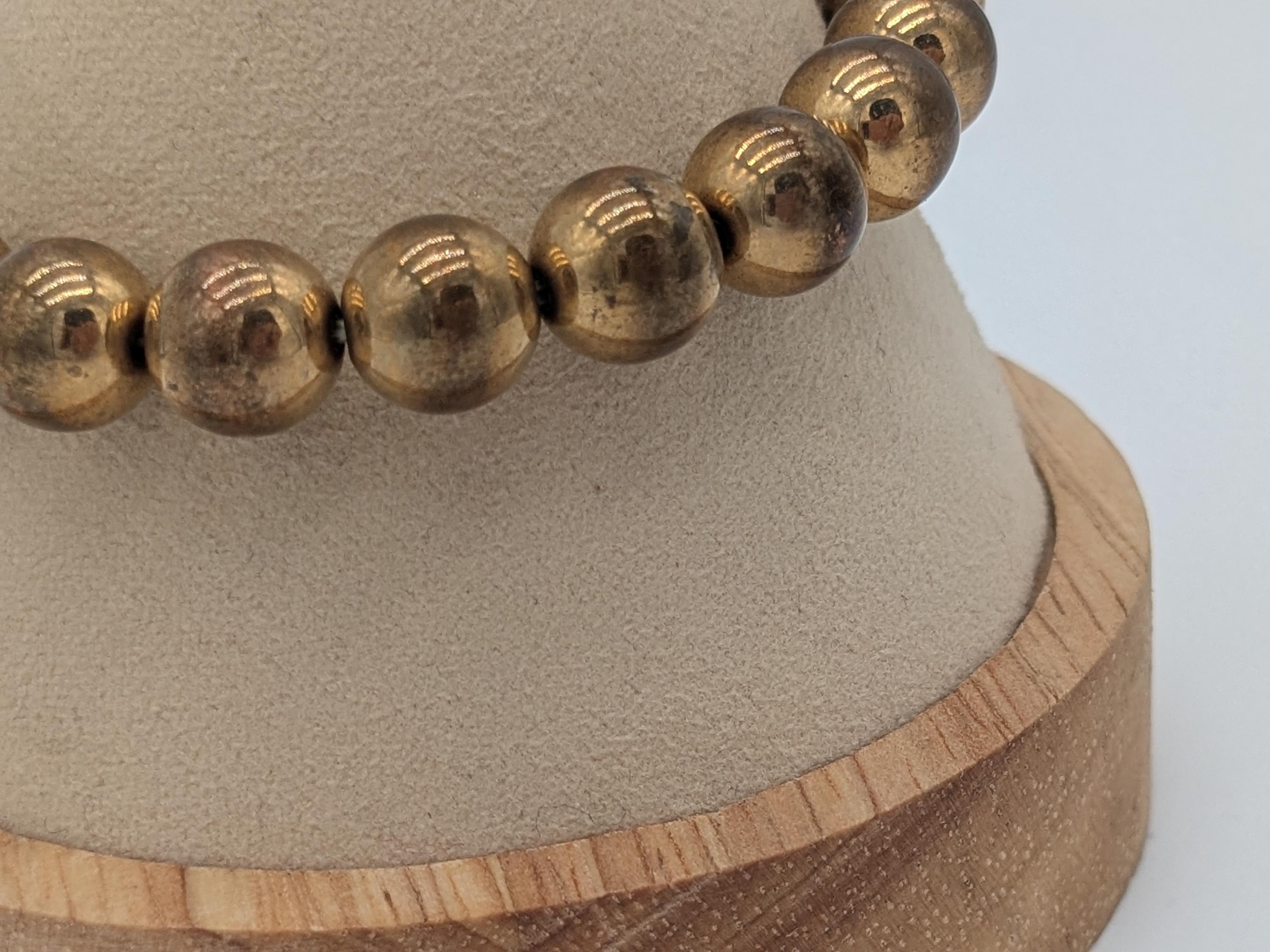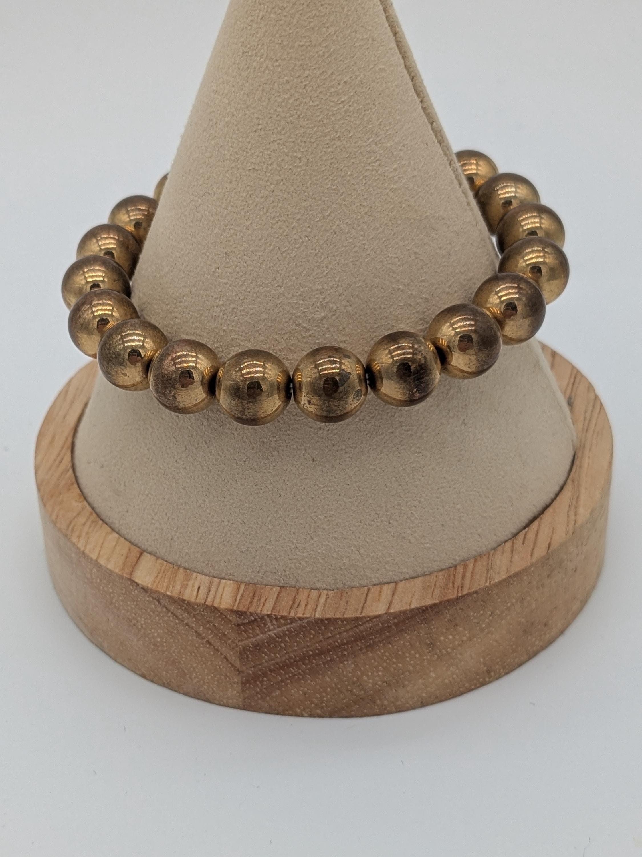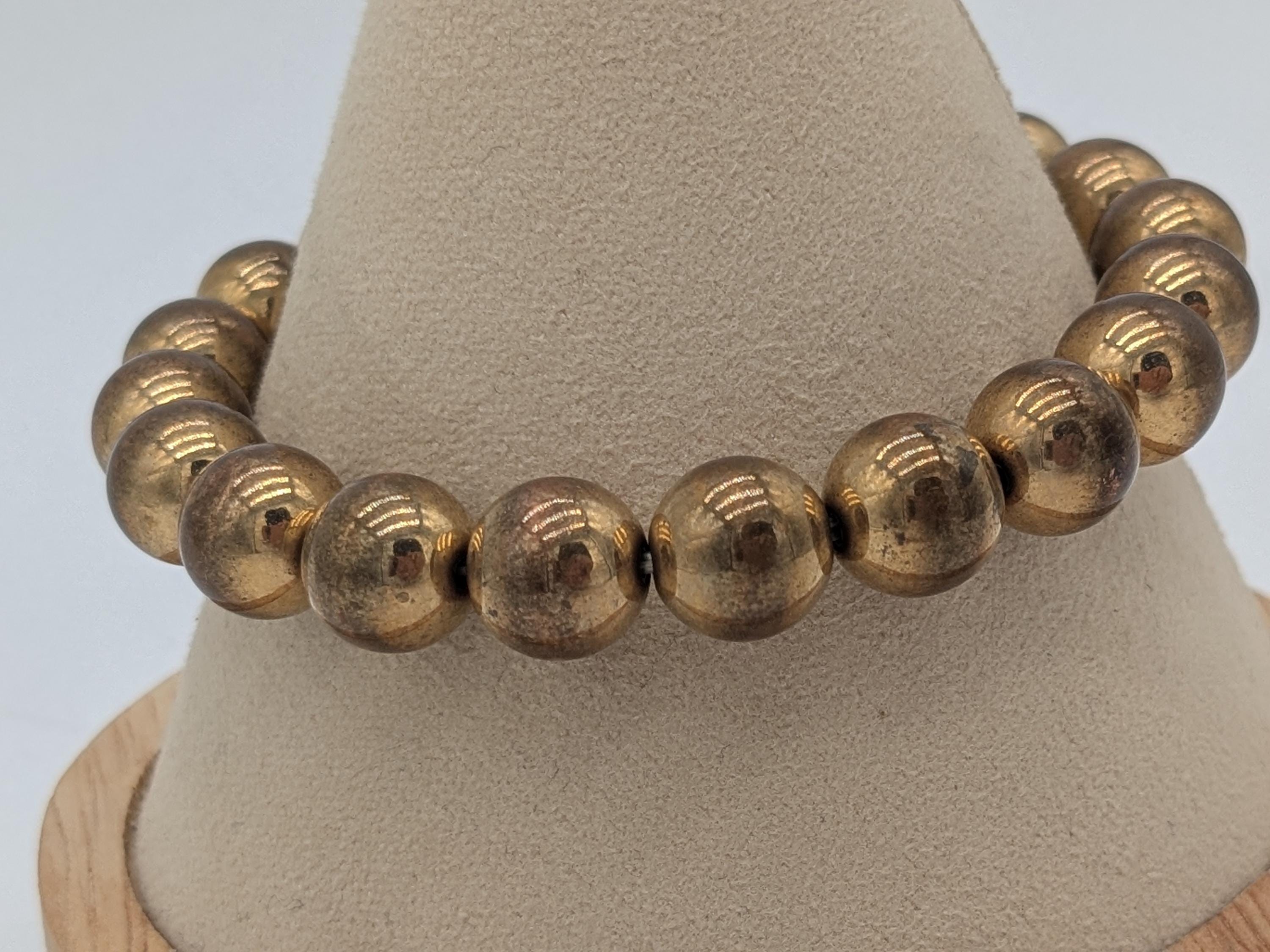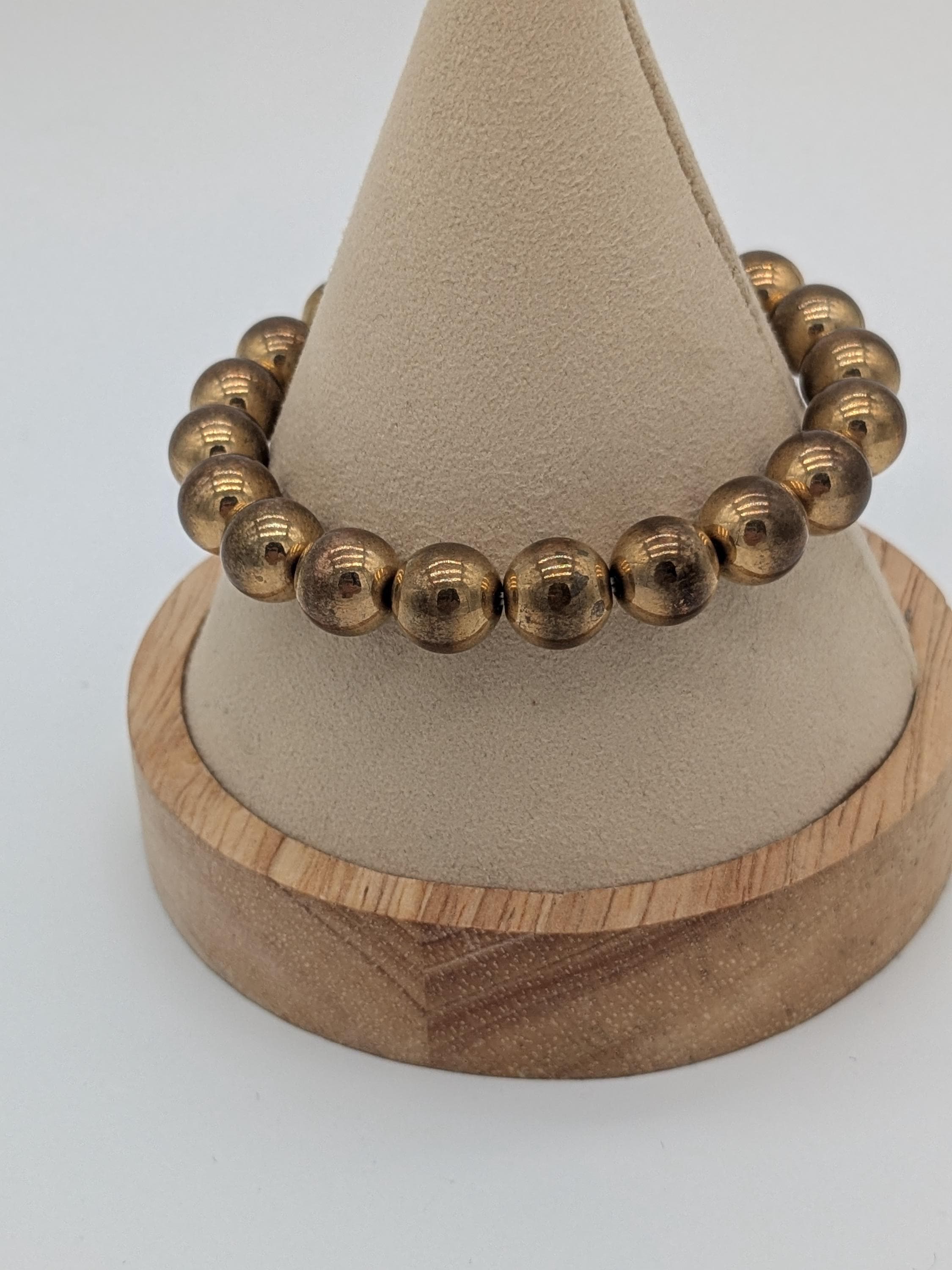 This elegant bronze-tone bead bracelet features a smooth polished finish and a flexible stretch design for easy wear. Perfect for both men and women, it brings a warm metallic touch to any outfit — ideal for layering or wearing solo as a timeless statement piece.