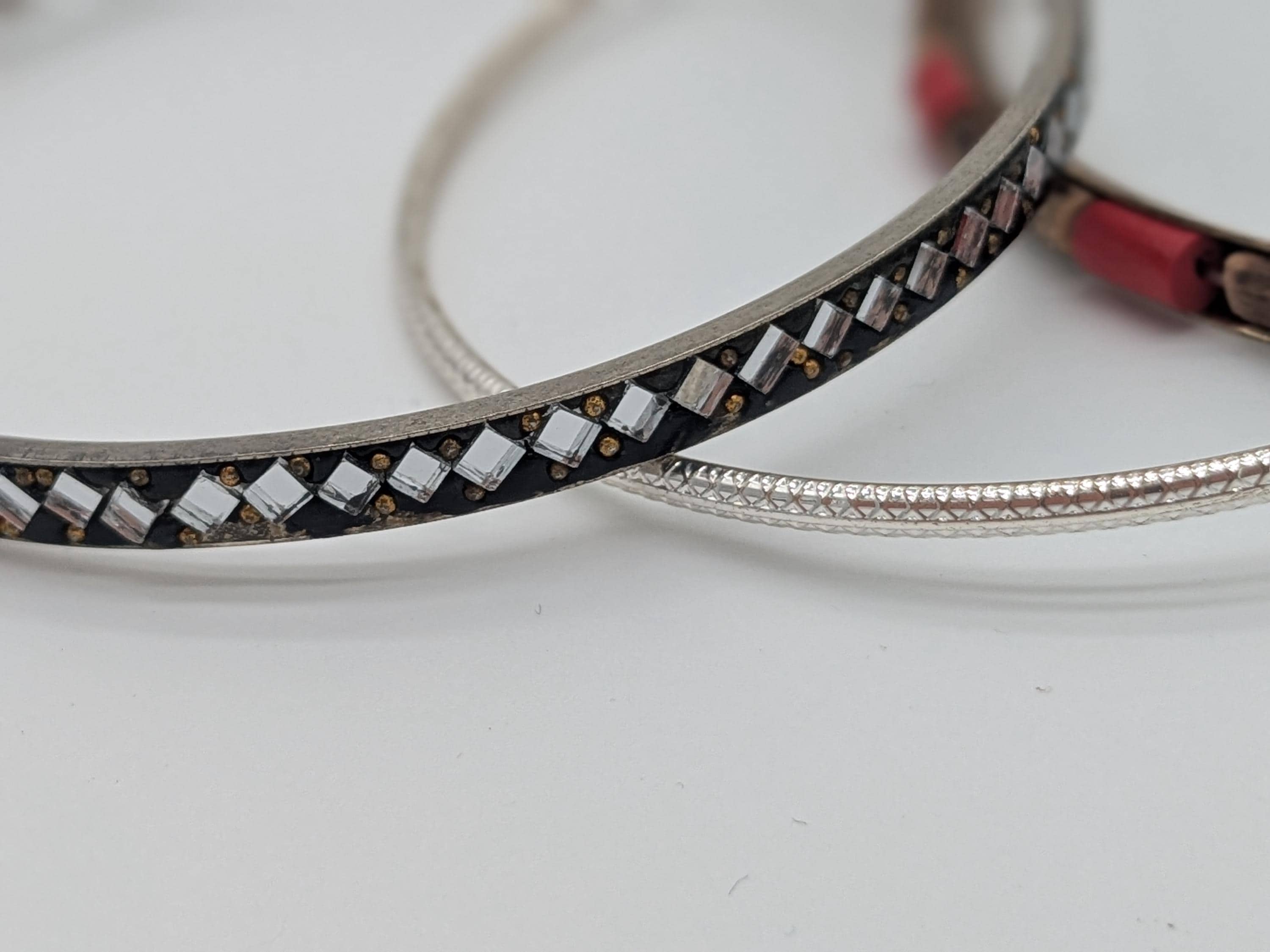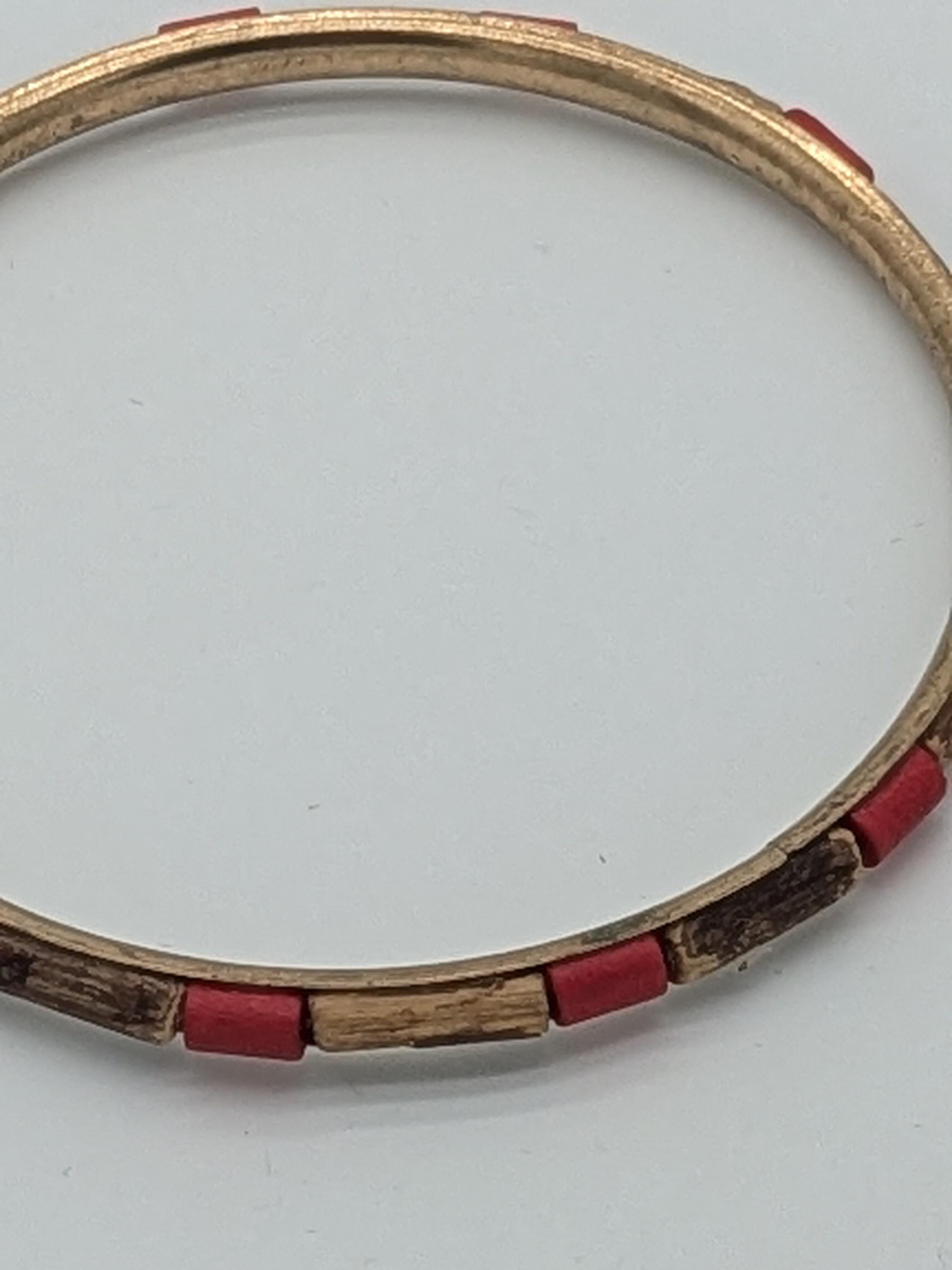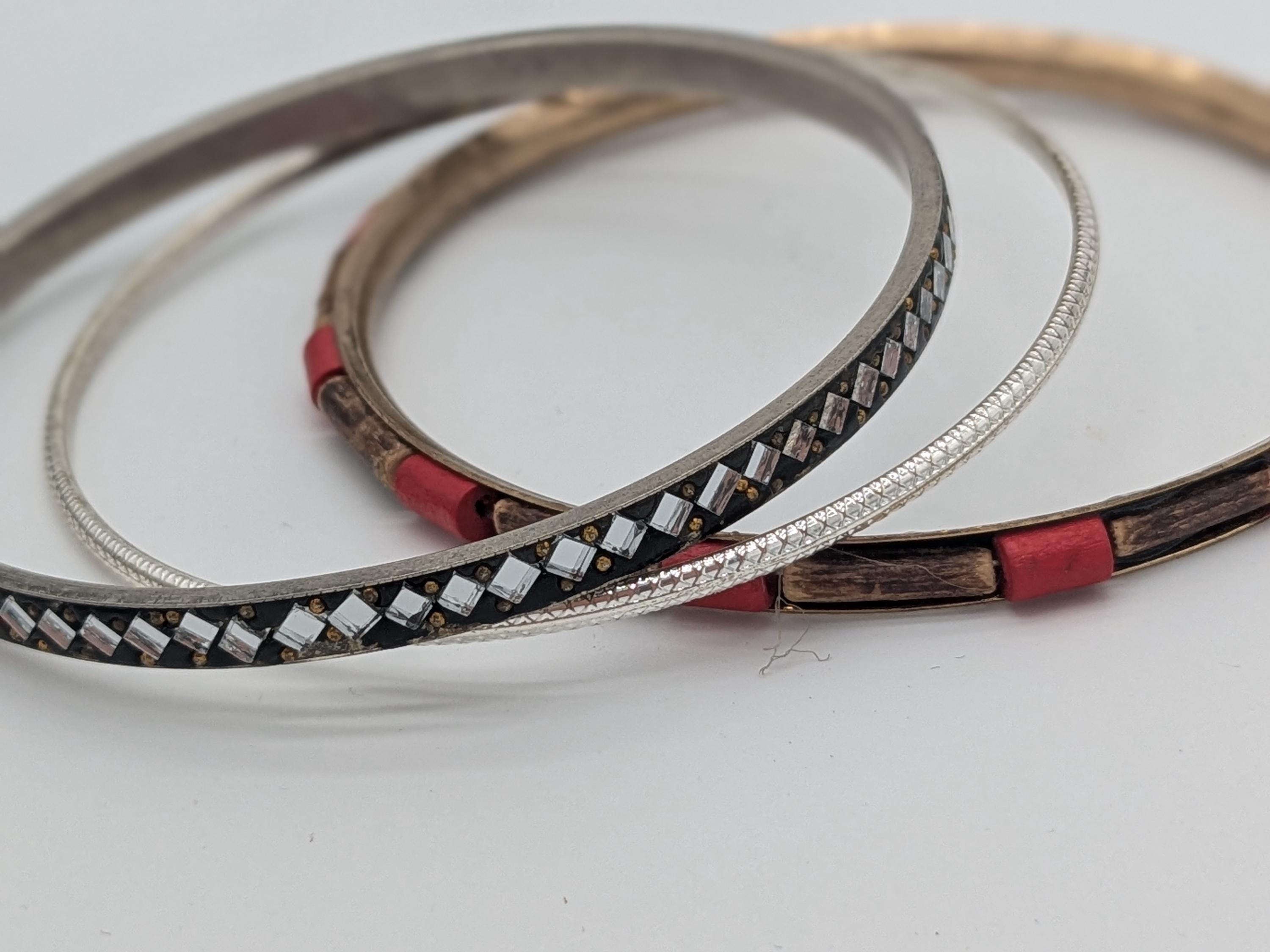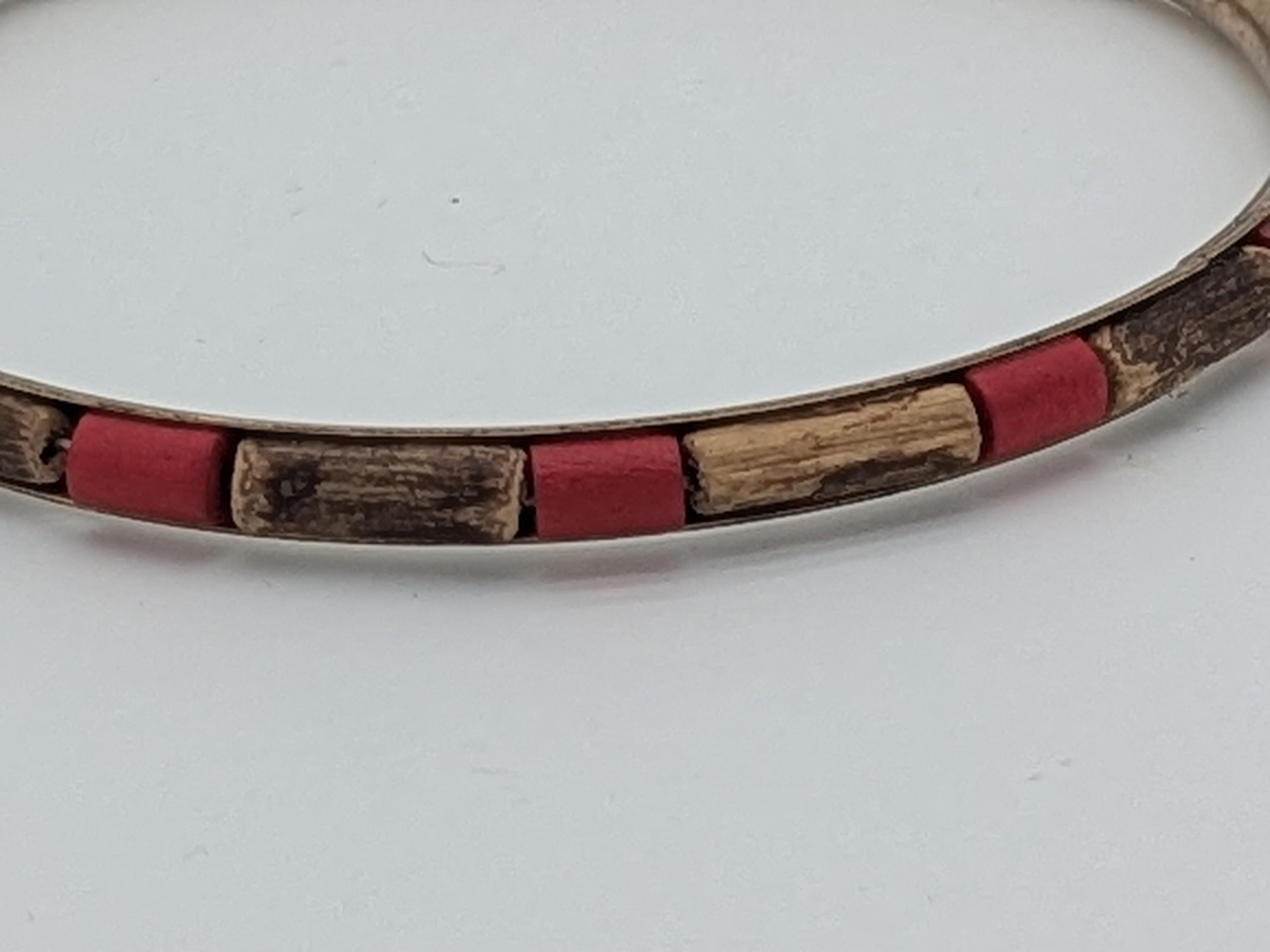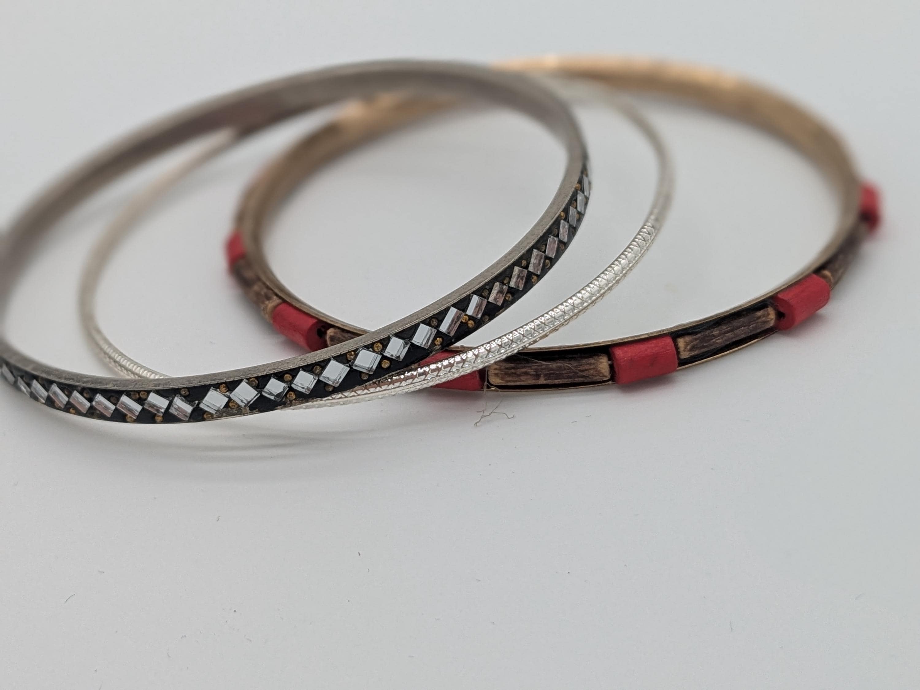 This boho-inspired bracelet set features a stunning mix of textures and tones — including black geometric patterns, earthy wooden accents, and vibrant red beads. Lightweight and unique, each bangle adds a pop of character to your look. Perfect for layering, gifting, or styling with casual and festival outfits.