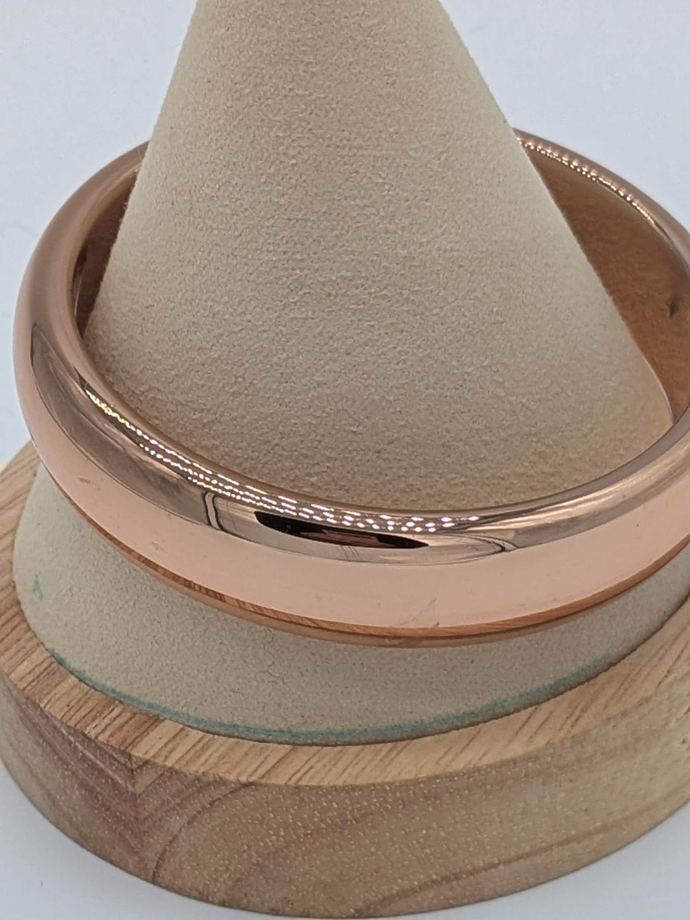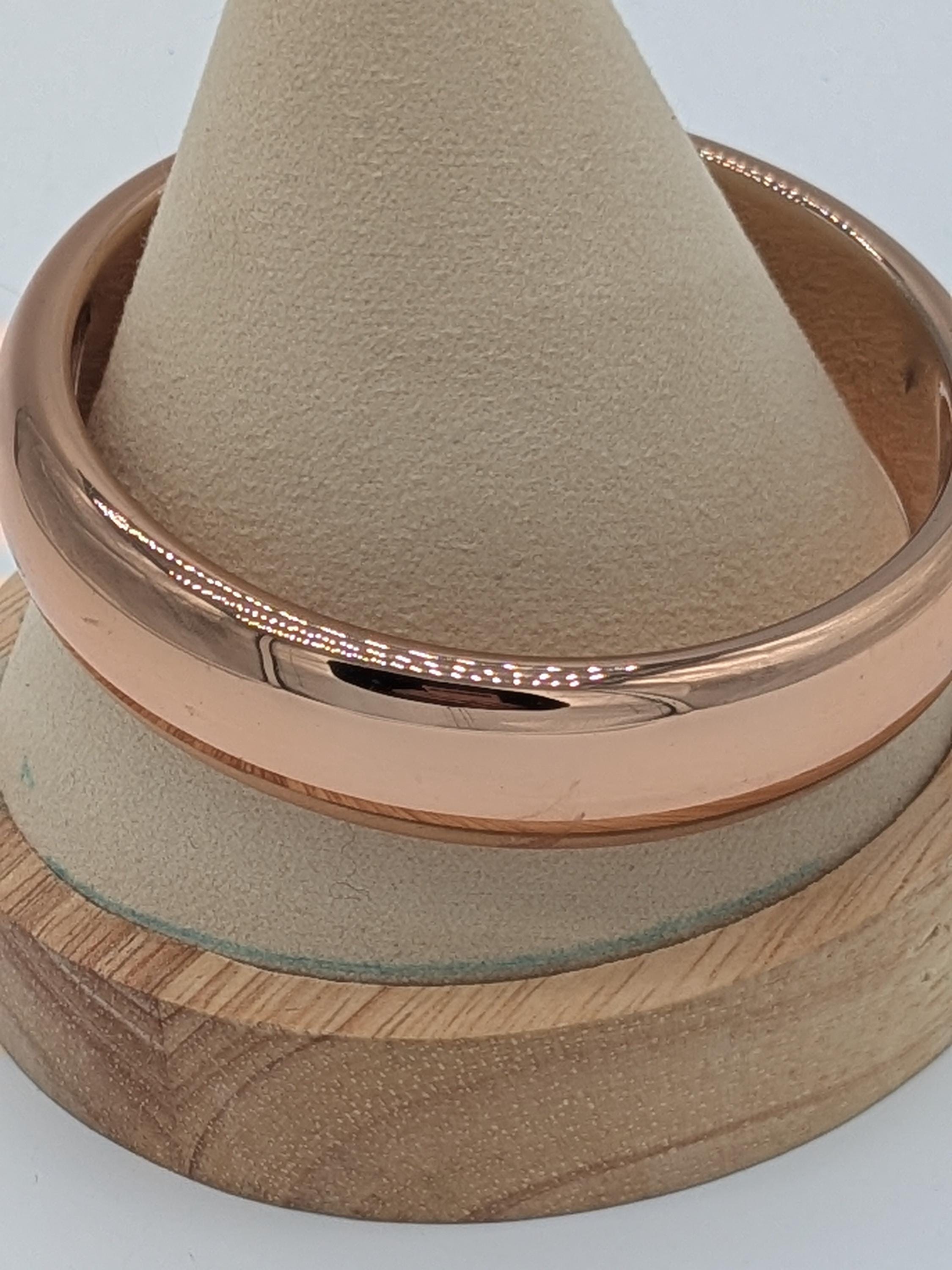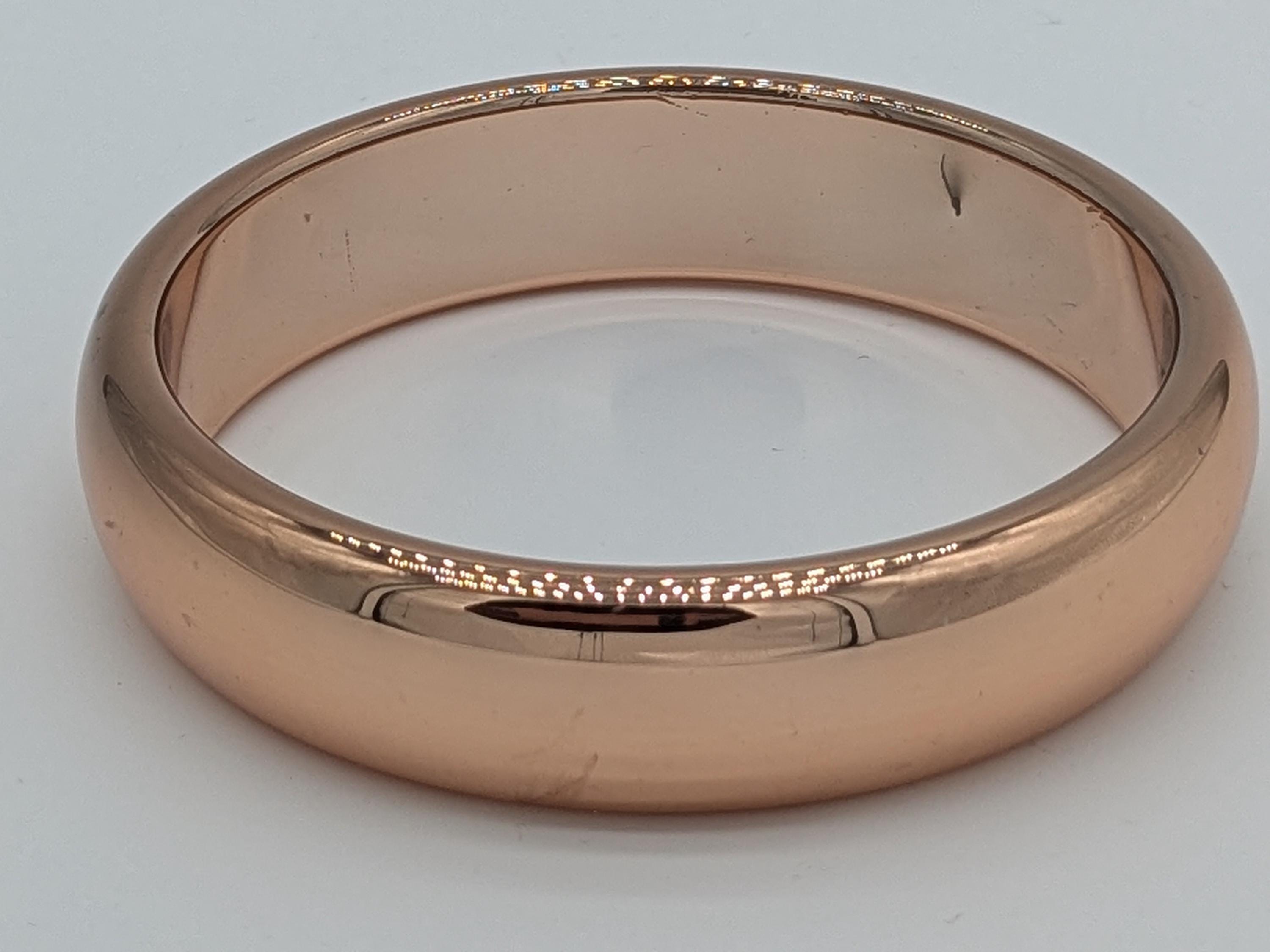 This beautiful rose-tone bangle features a smooth, polished finish that catches the light with every movement. Its classic rounded design offers a chic and timeless look — perfect for stacking or wearing solo. A versatile accessory that transitions effortlessly from casual to elegant occasions.