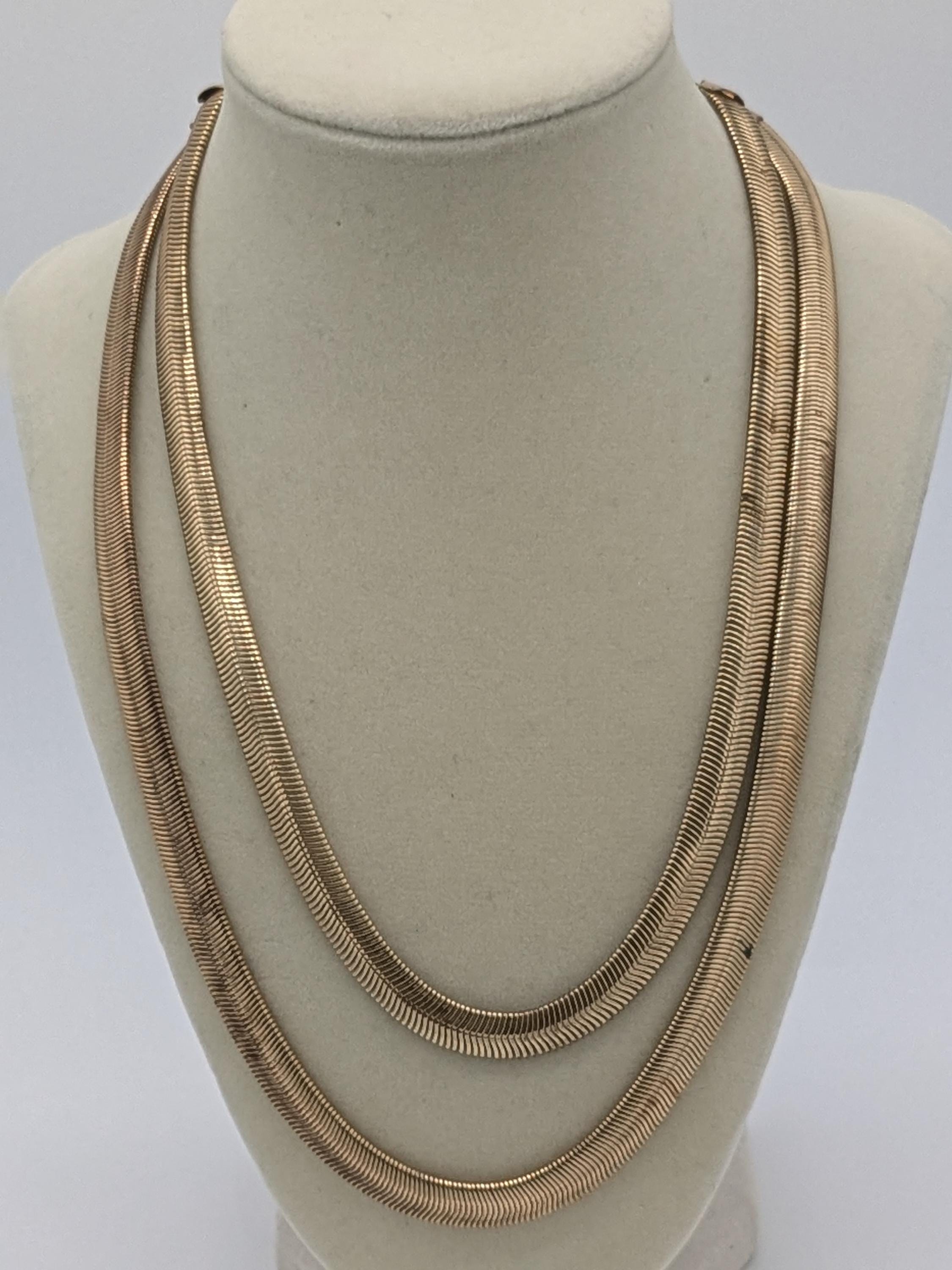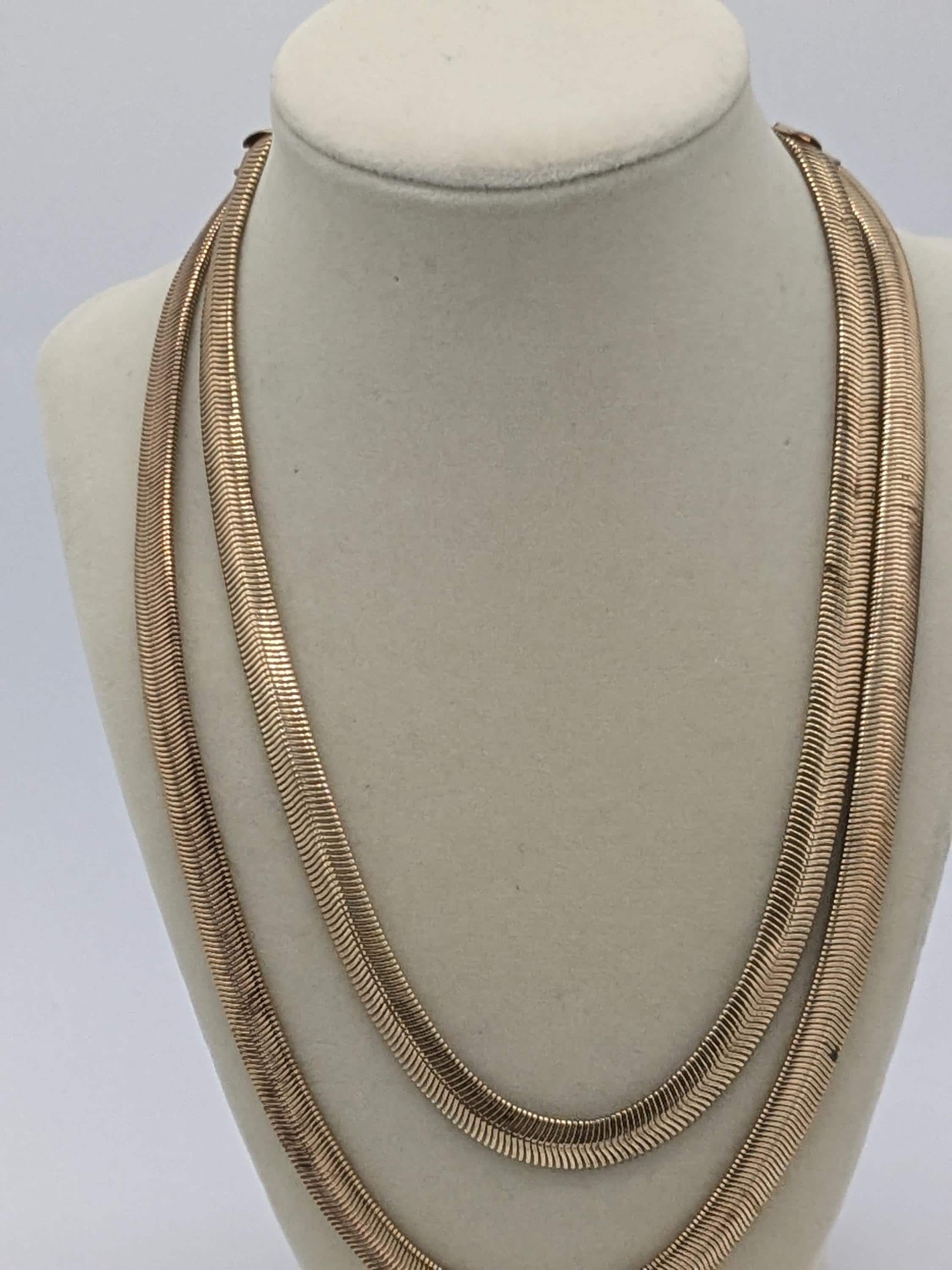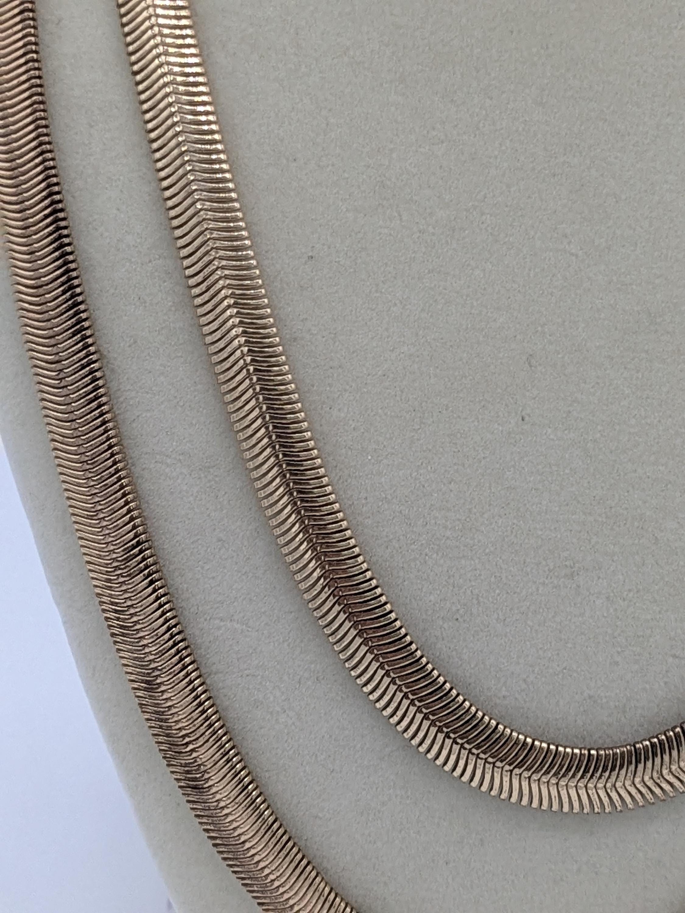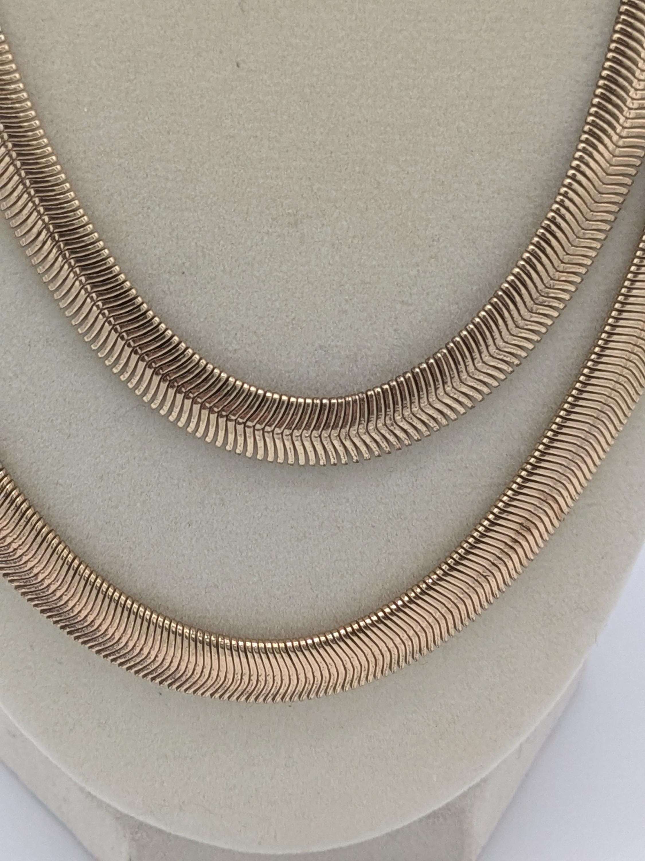 This elegant double-layer necklace features a smooth snake chain design with a beautiful fluid drape. Its sleek and modern style adds effortless sophistication to any outfit — perfect for layering or wearing solo. Lightweight, timeless, and ideal for everyday wear or a polished evening look.