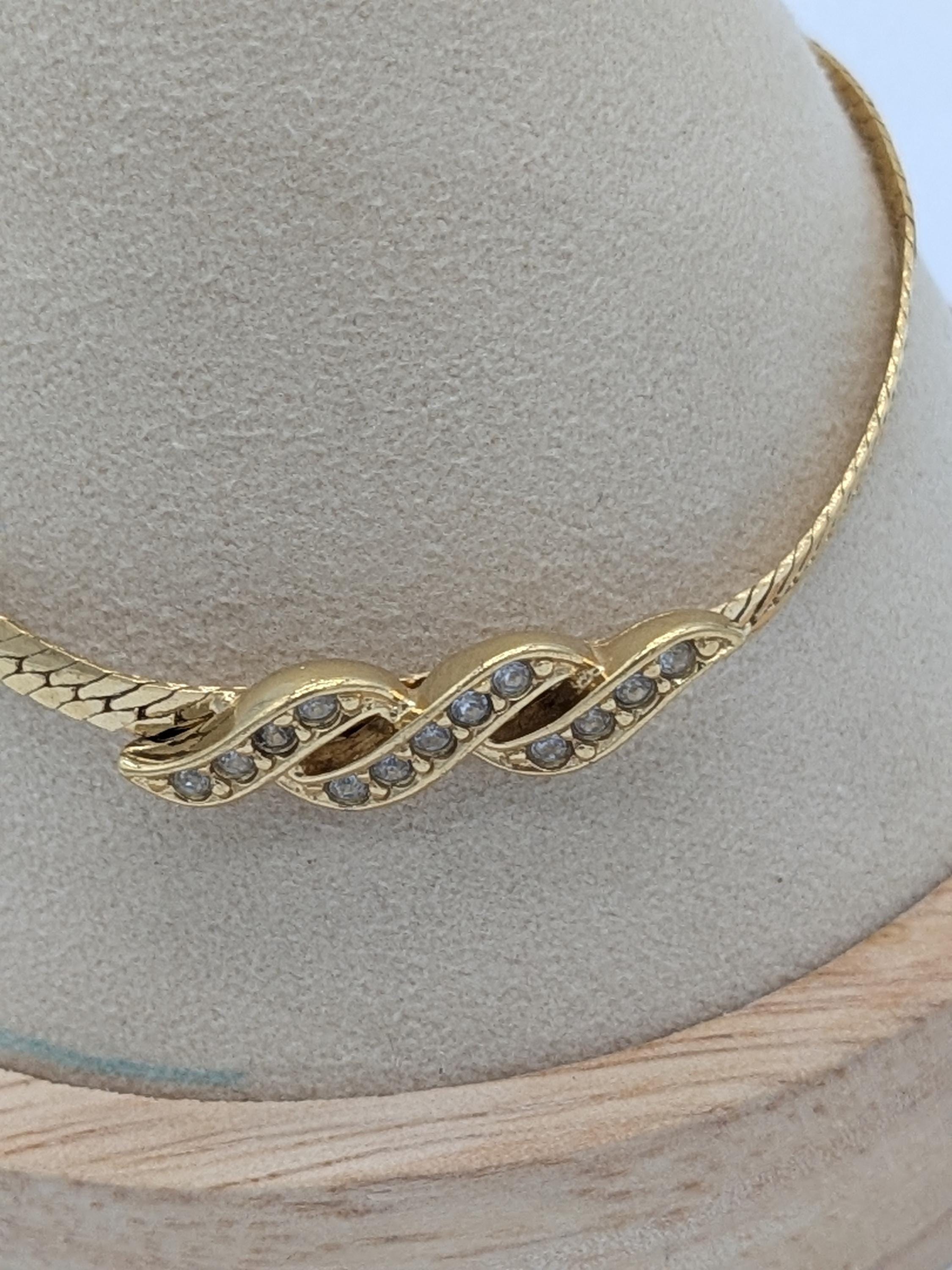 This elegant bangle bracelet features a graceful twist design accented with sparkling rhinestones. Its sleek textured band and classic silhouette make it perfect for both everyday wear and special occasions, adding just the right touch of shimmer.