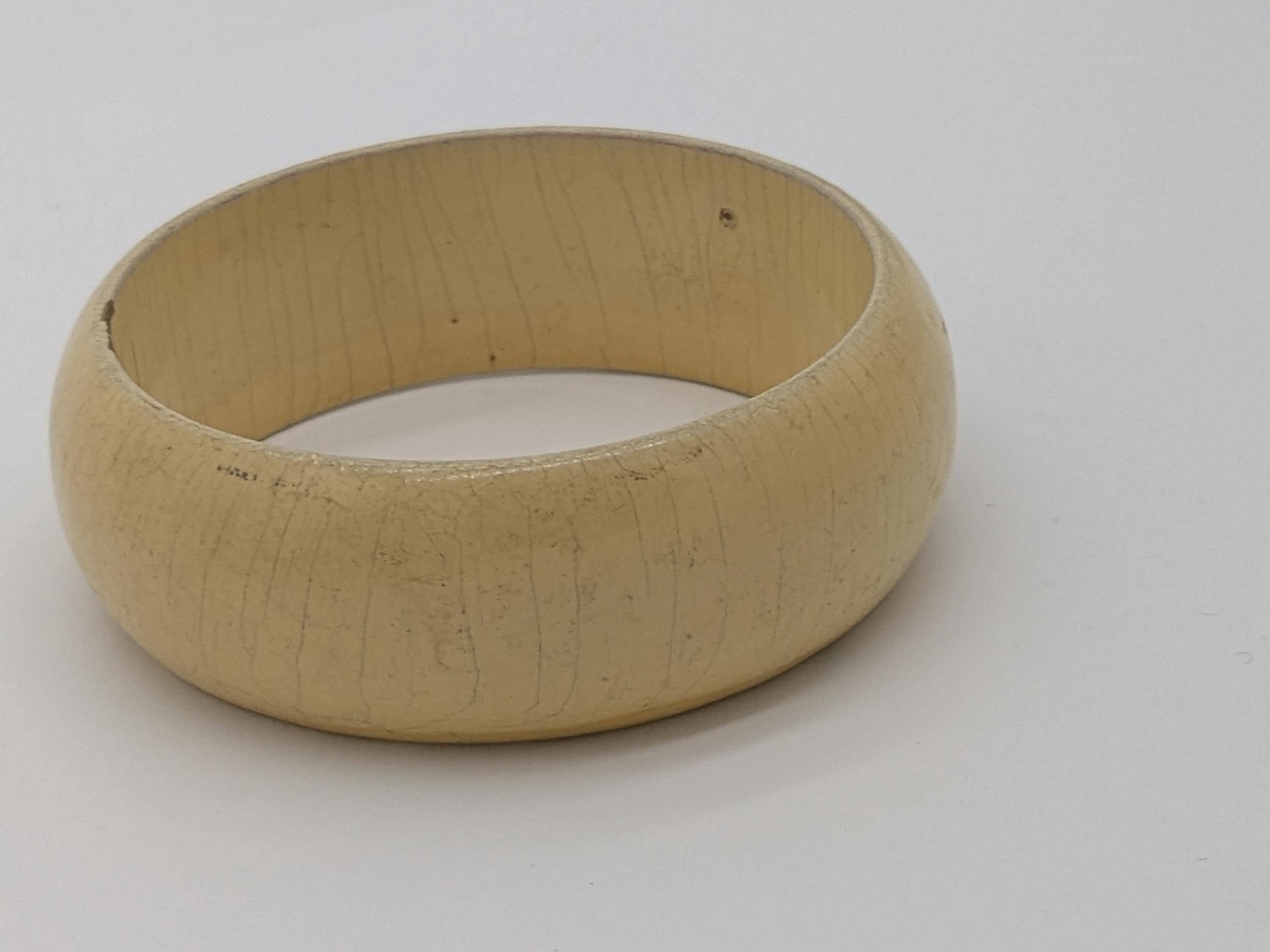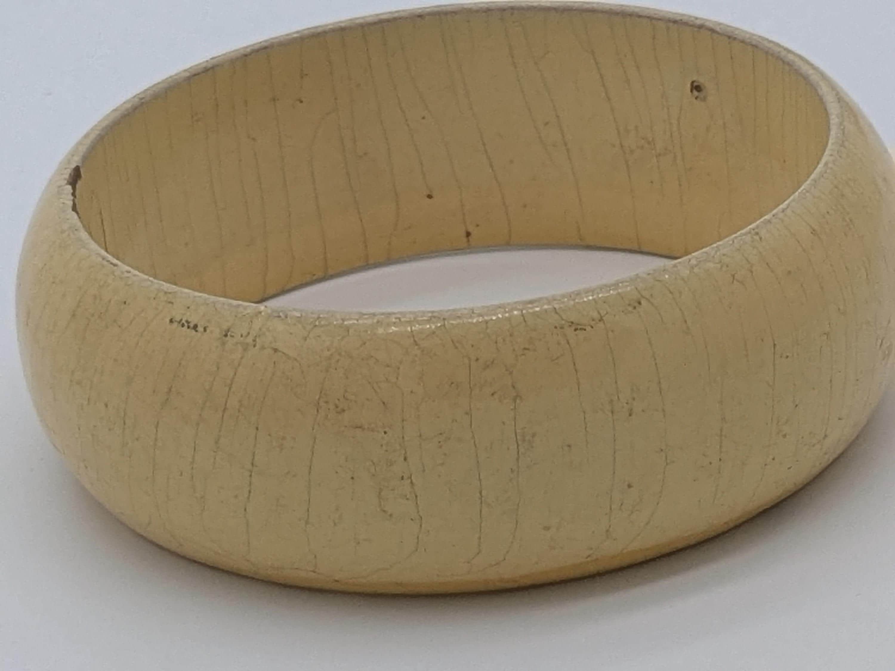 Vintage Cream Bangle – Wide Retro Style Wooden Bracelet