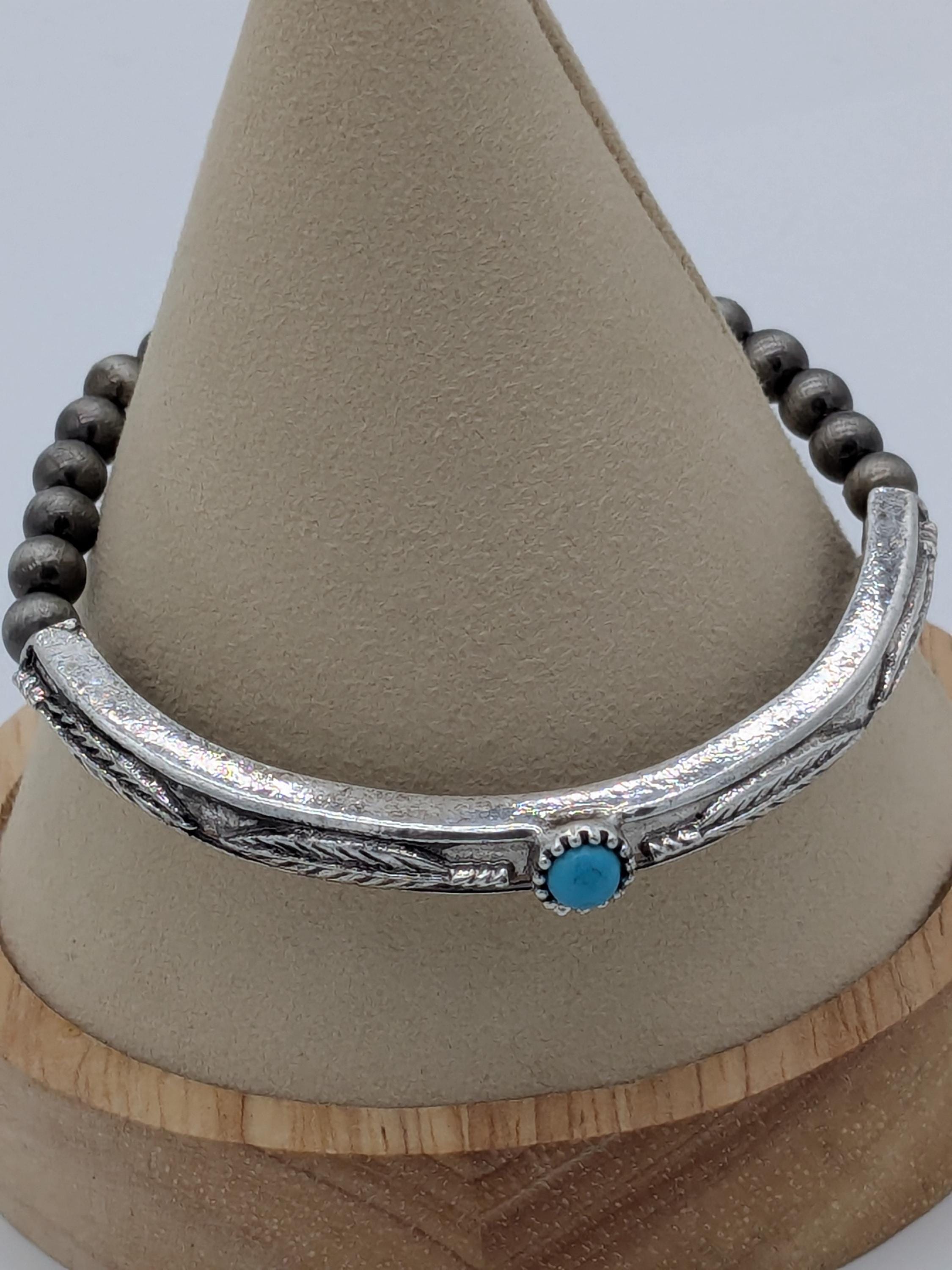 Vintage Style Beaded Bracelet – Boho Stretch Bangle with Turquoise Accent