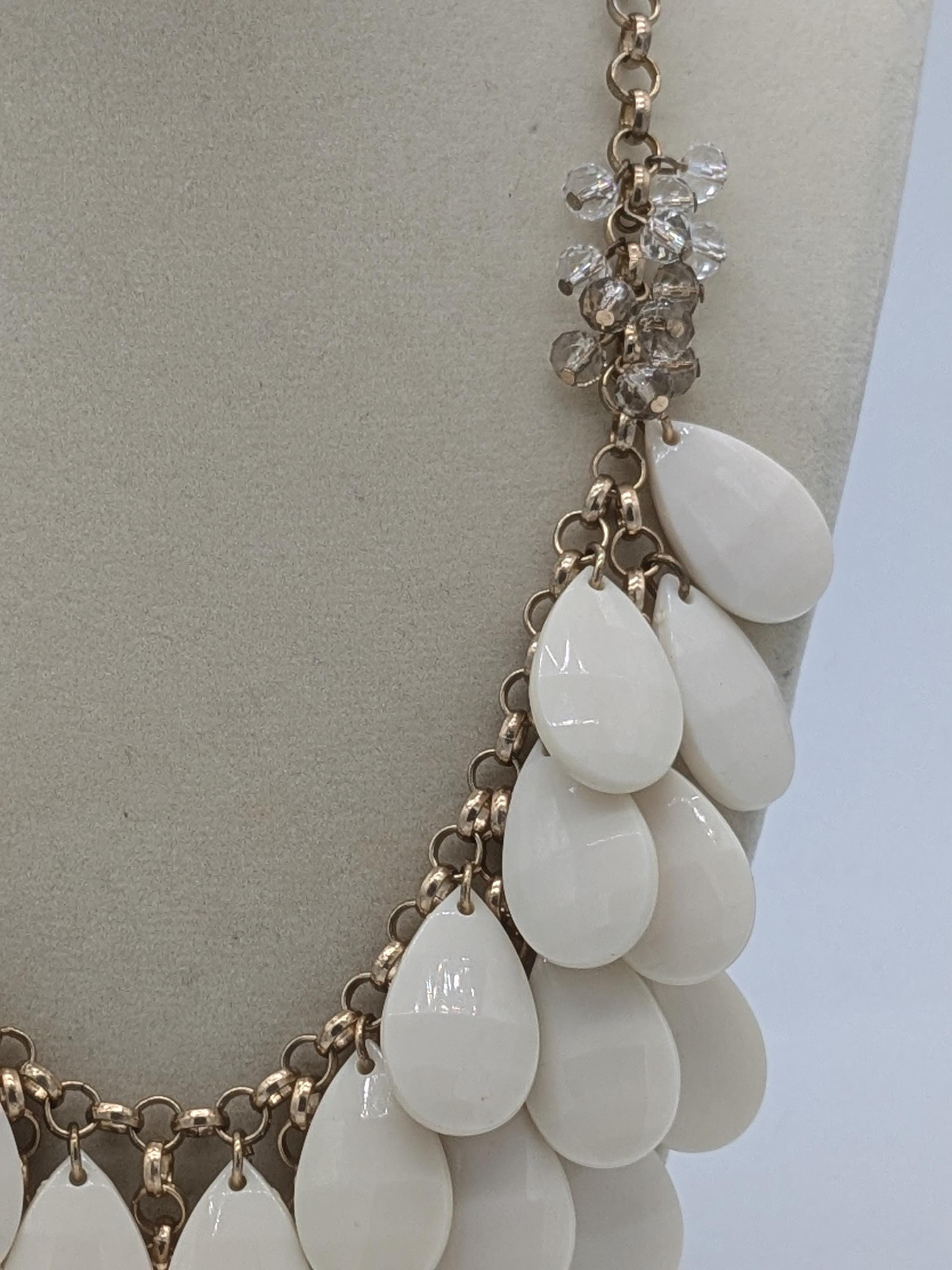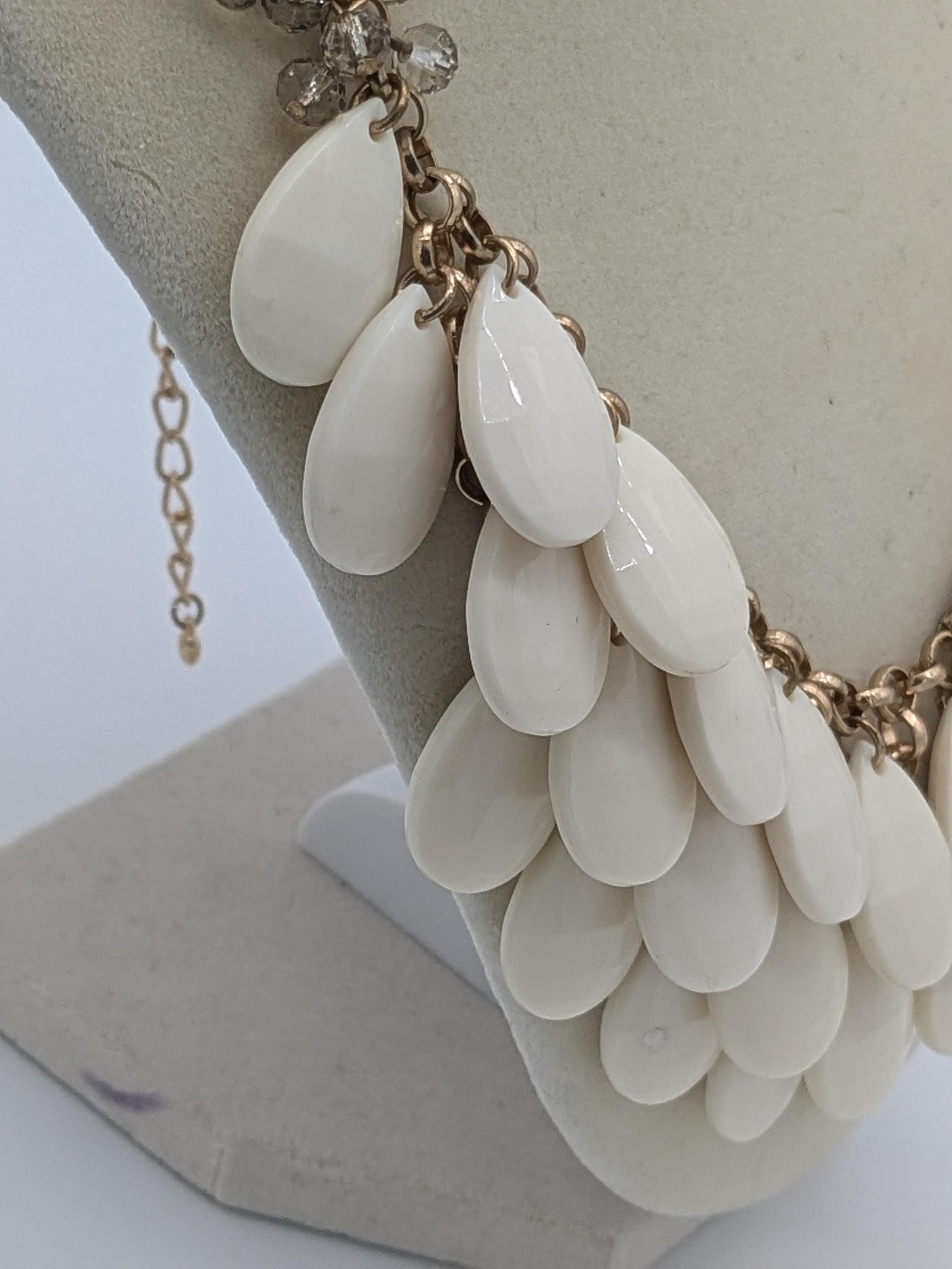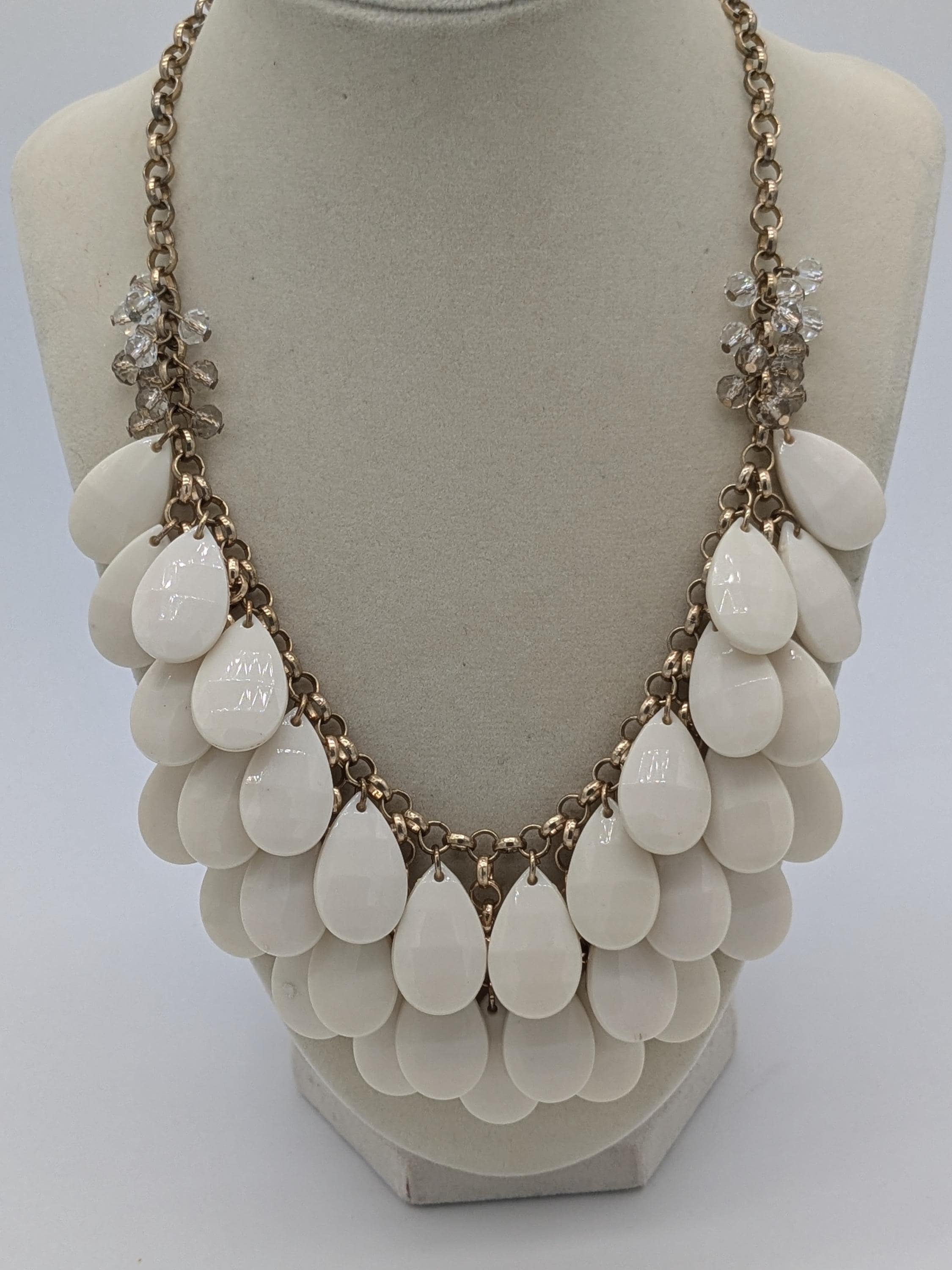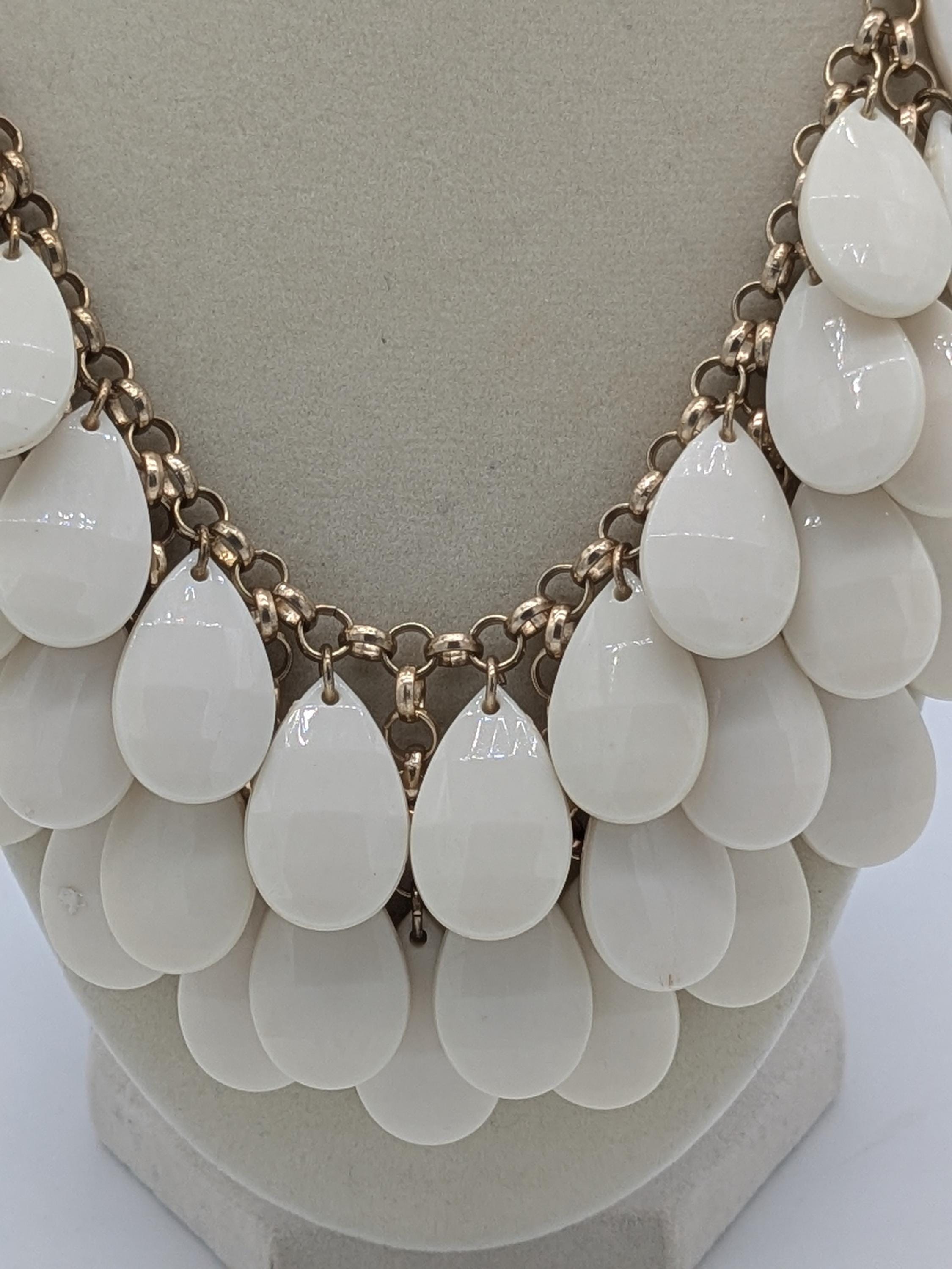 This bold layered bib necklace features cascading white teardrop beads that create a stunning, elegant statement. Perfect for weddings, evenings, or any occasion that calls for effortless sophistication and drama. Lightweight yet eye-catching, it’s designed to complement both casual and formal outfits.