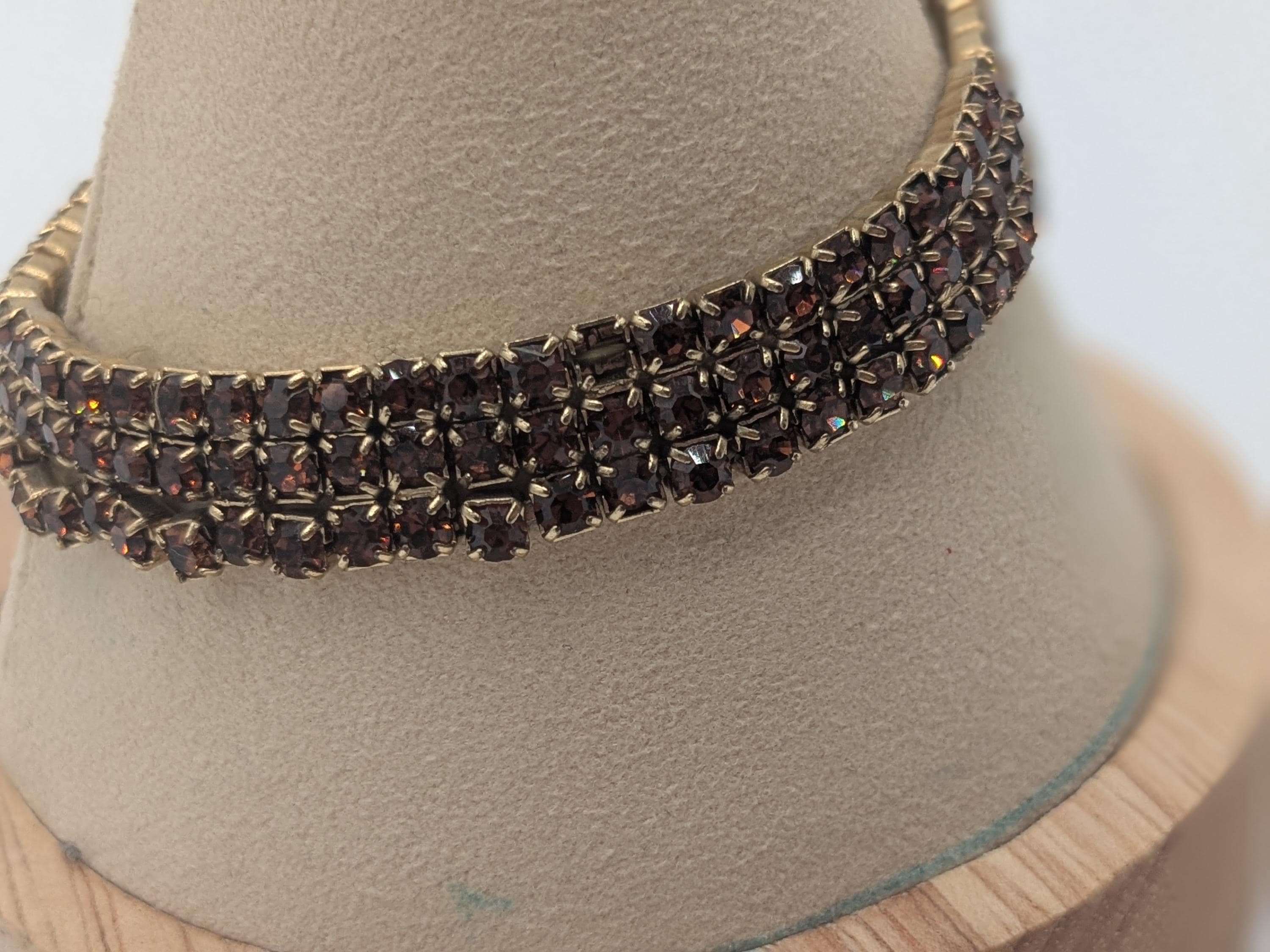 Vintage Brown Crystal Stretch Bracelet – Retro Rhinestone Wide Cuff