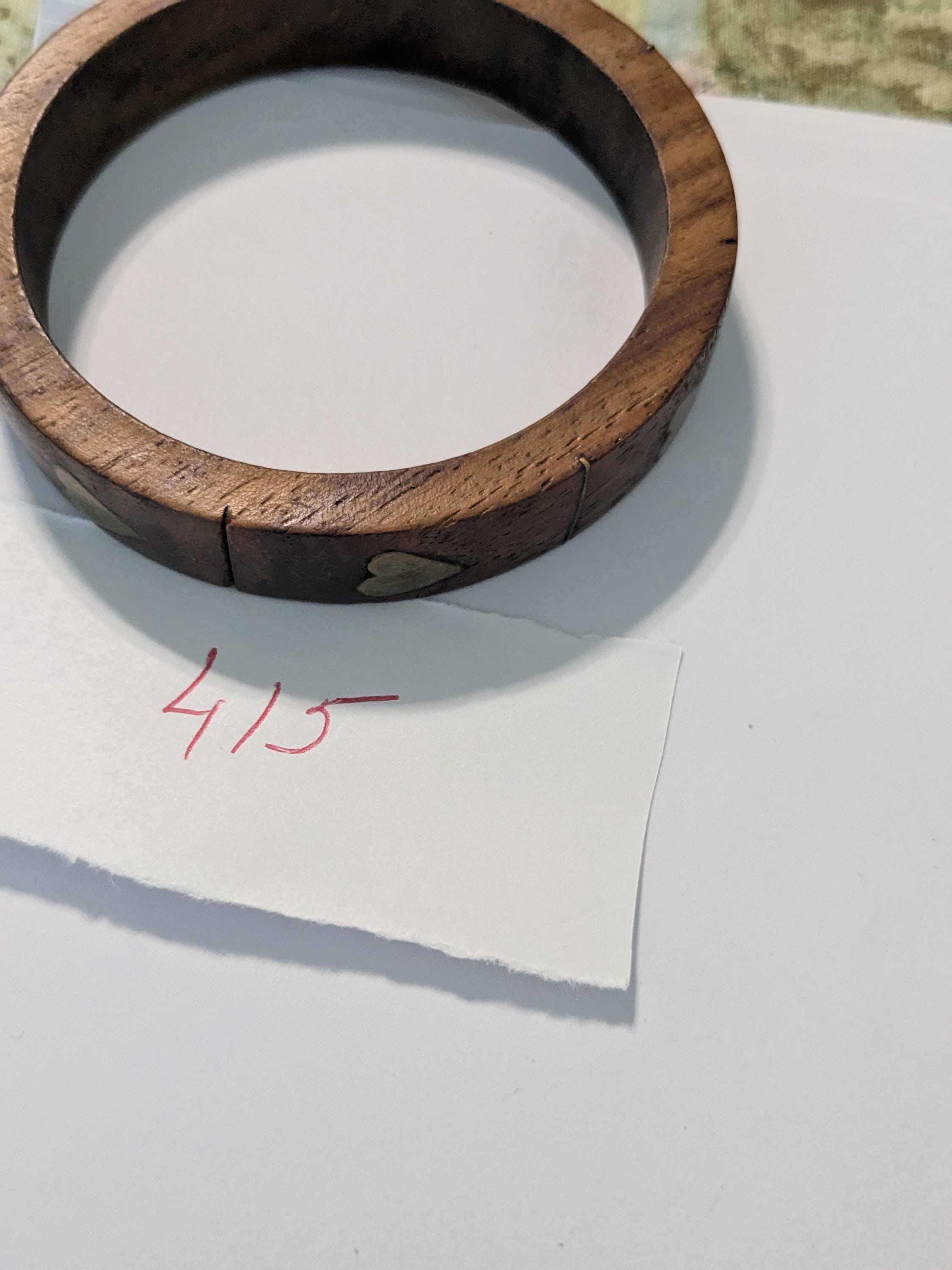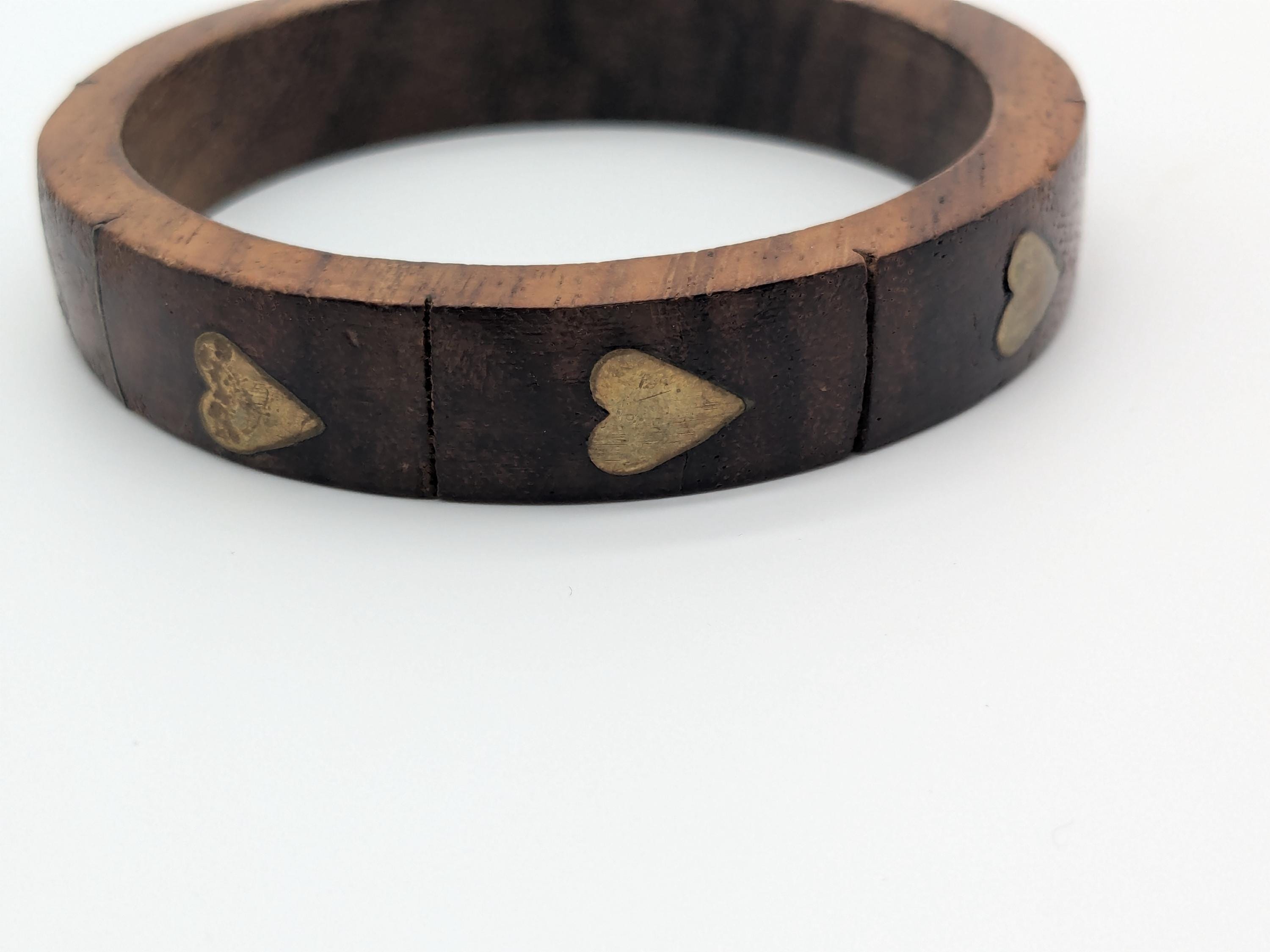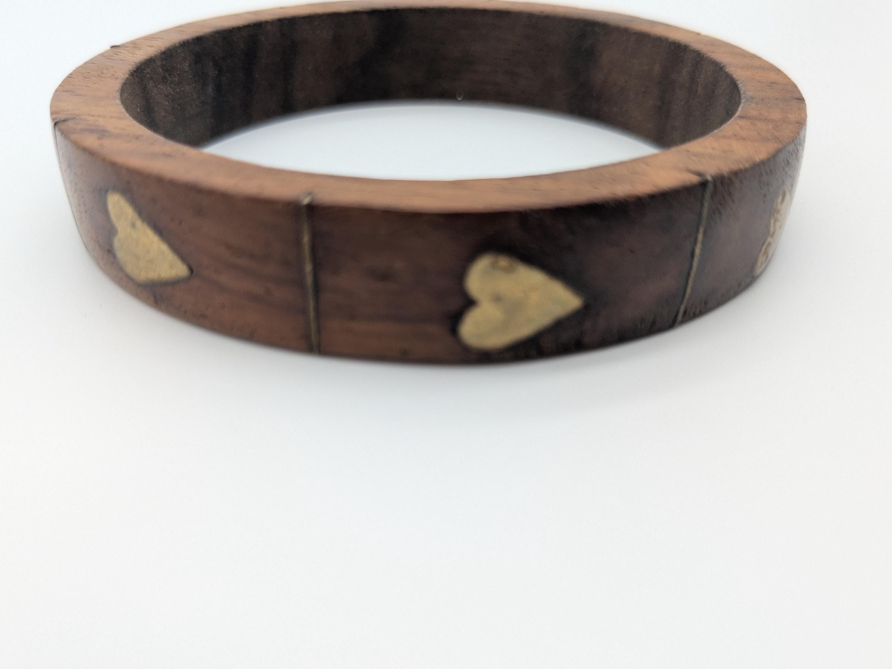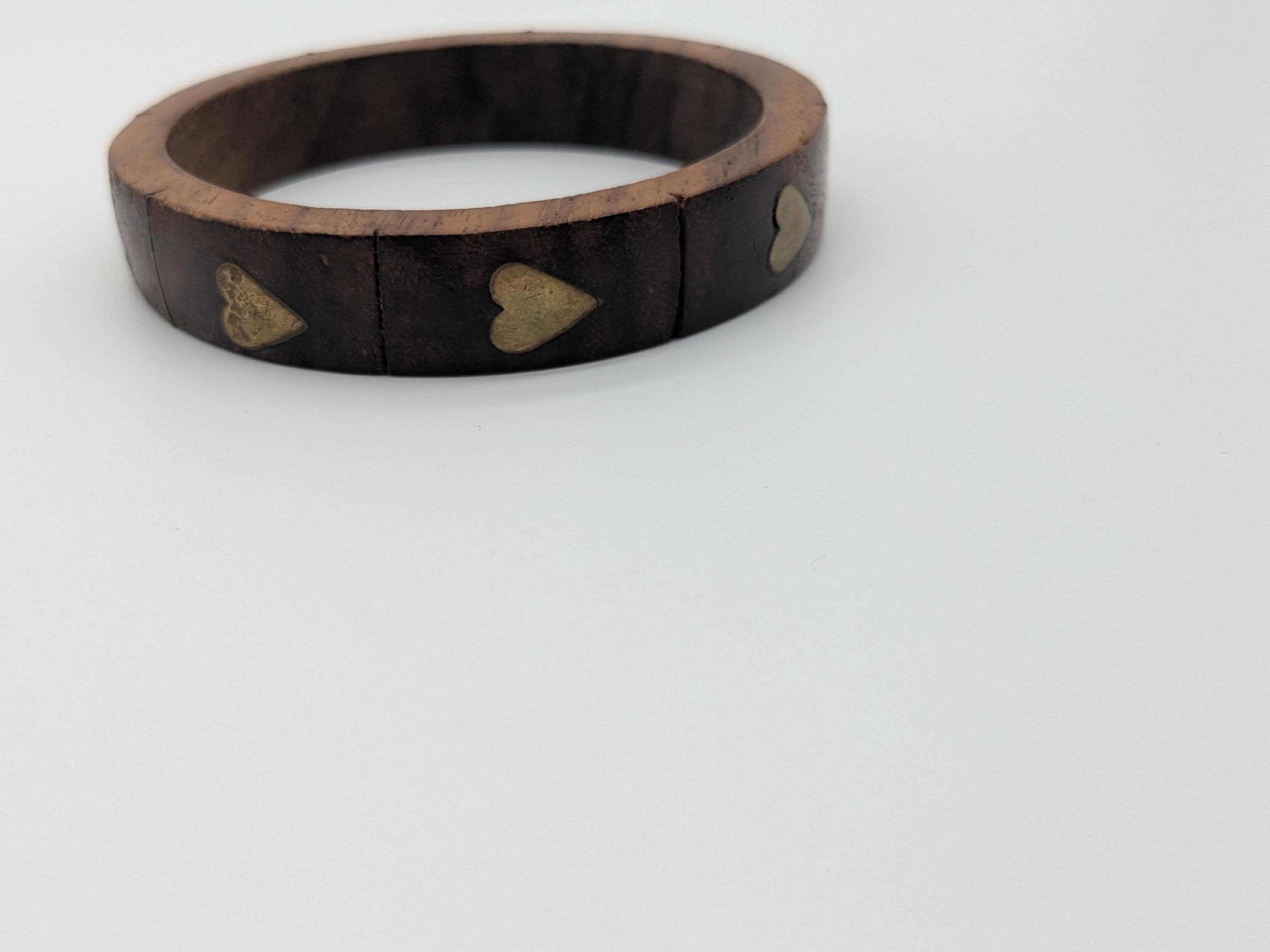 This charming handcrafted wooden bangle features small heart inlays for a warm, earthy touch. Perfect for nature lovers and those who appreciate simple, meaningful accessories.