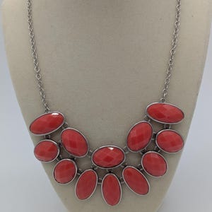 Make a striking impression with this large black lucite flower bib necklace. Set in gold tone metal, this bold yet elegant piece adds dramatic flair to formal outfits or evening wear with a timeless, vintage-inspired charm.