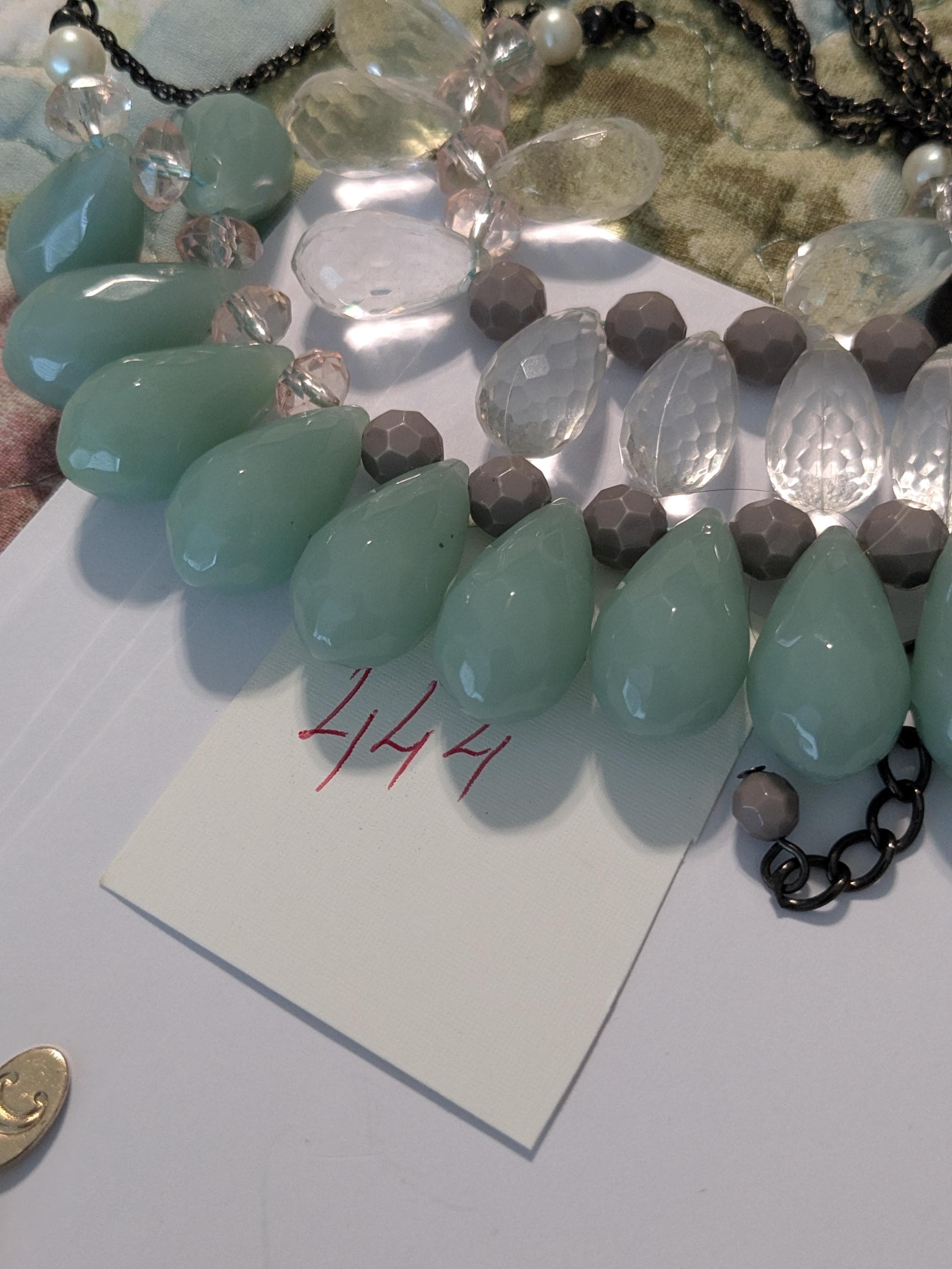 Mint Green and Clear Teardrop Beaded Necklace – Elegant Layered Statement Jewelry