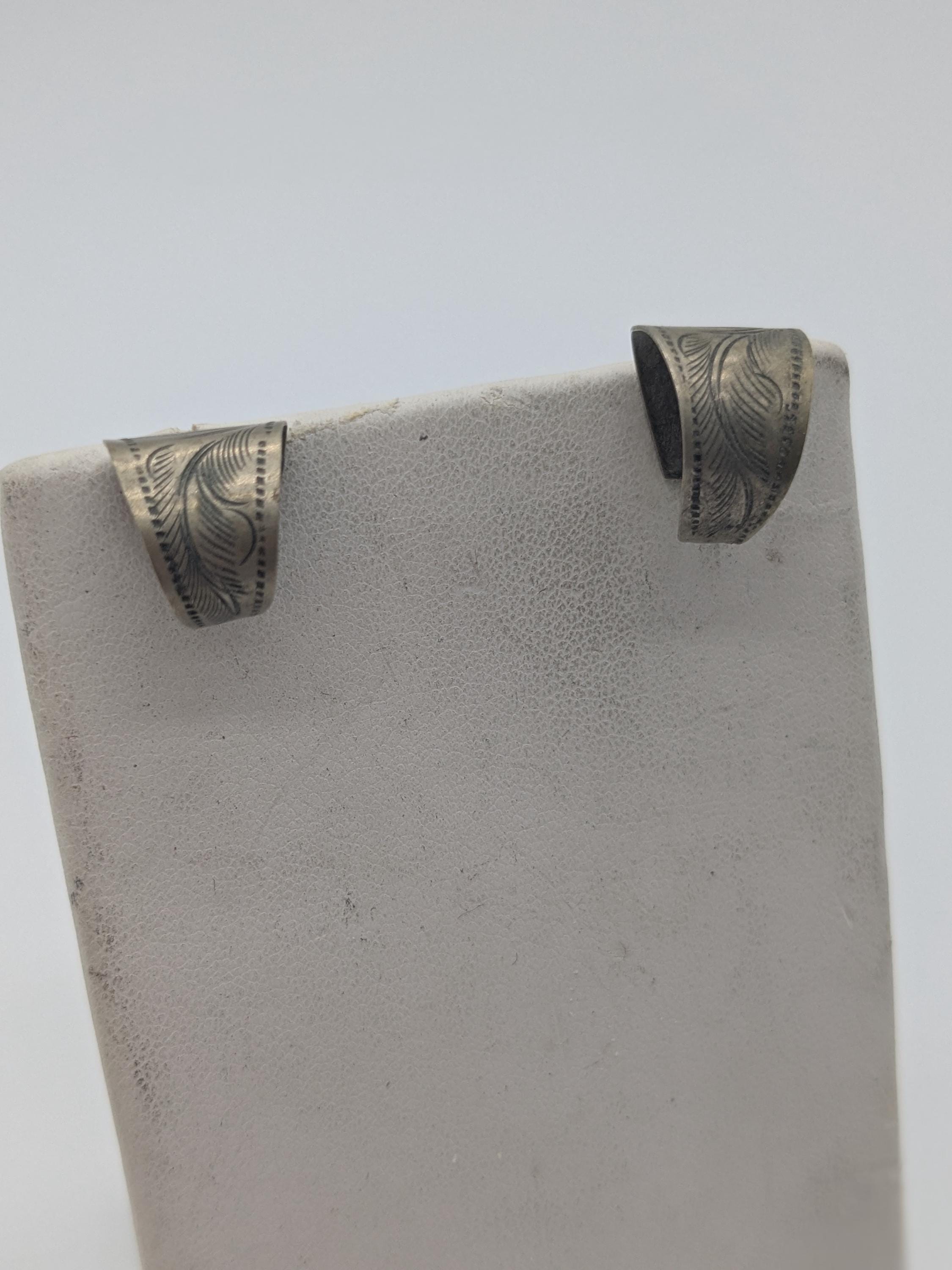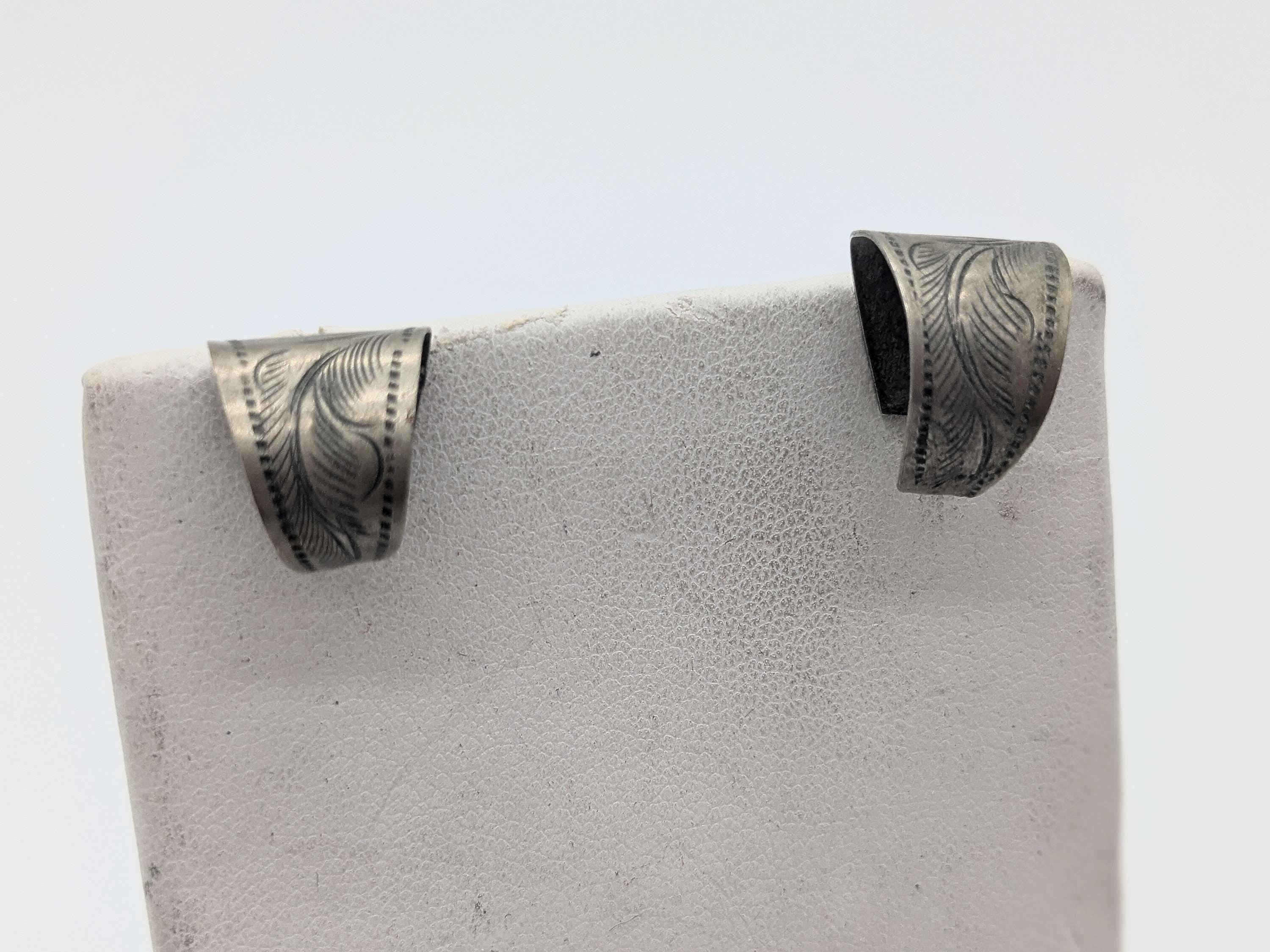Native American Style Hand Stamped Sterling Tone Hoop Earrings – Vintage Feather Detail