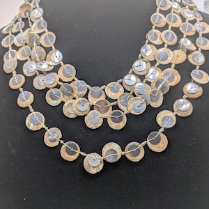 Stylish and rare 36-inch goldtone necklace featuring distinctive margarita links and criss-cross panel chain design. A vintage-inspired piece that brings bold texture and elegance to any look.
