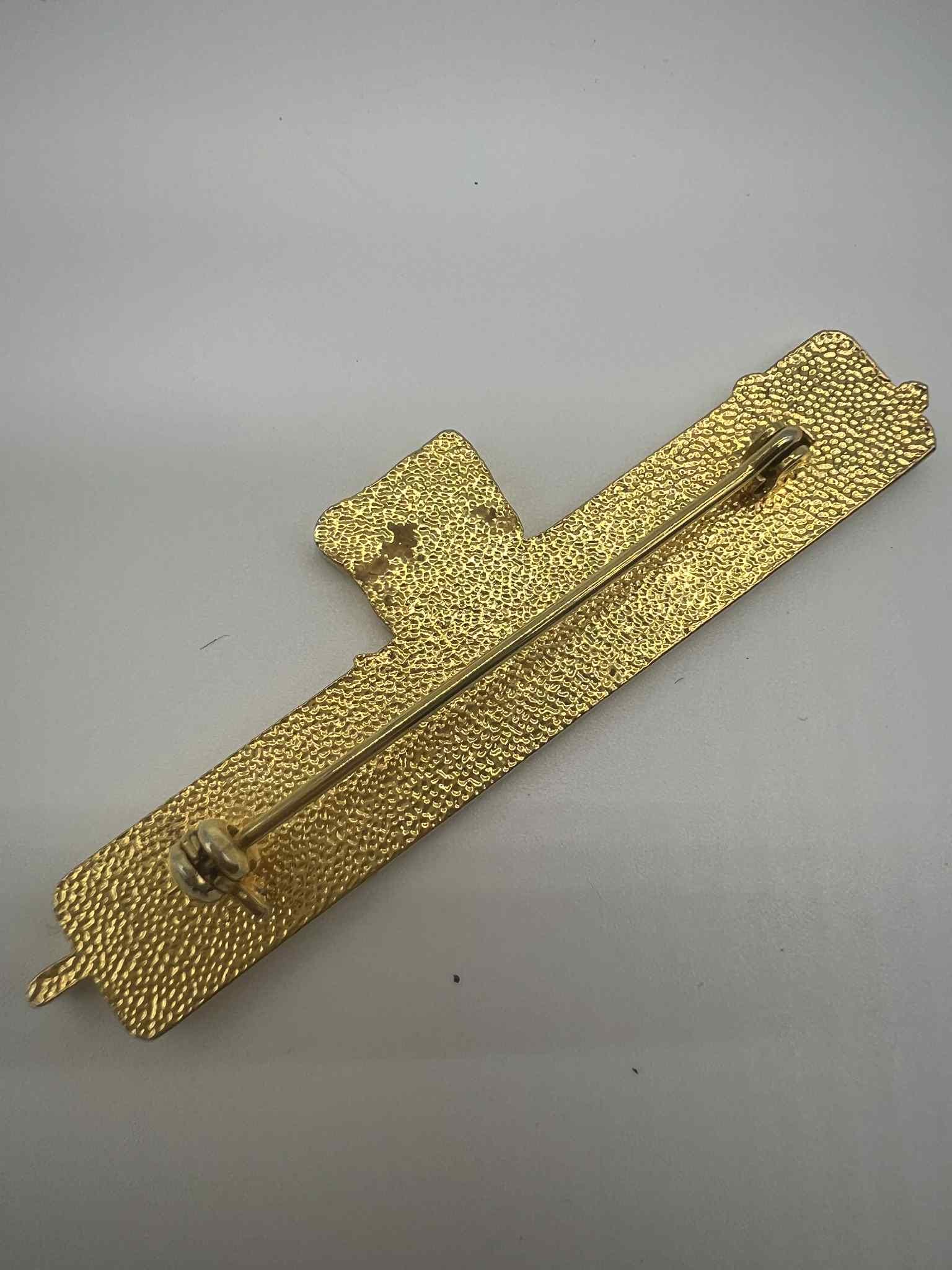 A beautiful Armenian script bar brooch featuring a textured background and raised calligraphy design. This meaningful statement pin is perfect for adding cultural charm to jackets, scarves, or bags. Lightweight, artistic, and ideal for gifting to anyone who loves Armenian heritage and unique statement accessories.