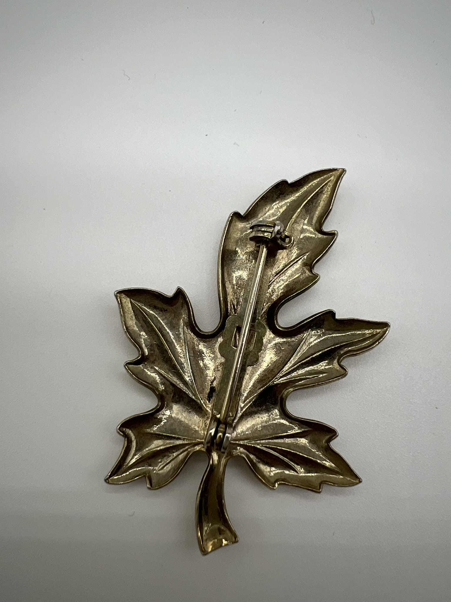 This vintage textured leaf brooch features a beautifully detailed maple leaf design with rich character and depth. Perfect for fall fashion, nature-inspired outfits, or adding a touch of classic charm to jackets, scarves, and hats. Lightweight, elegant, and ideal for collectors of timeless costume jewelry.
