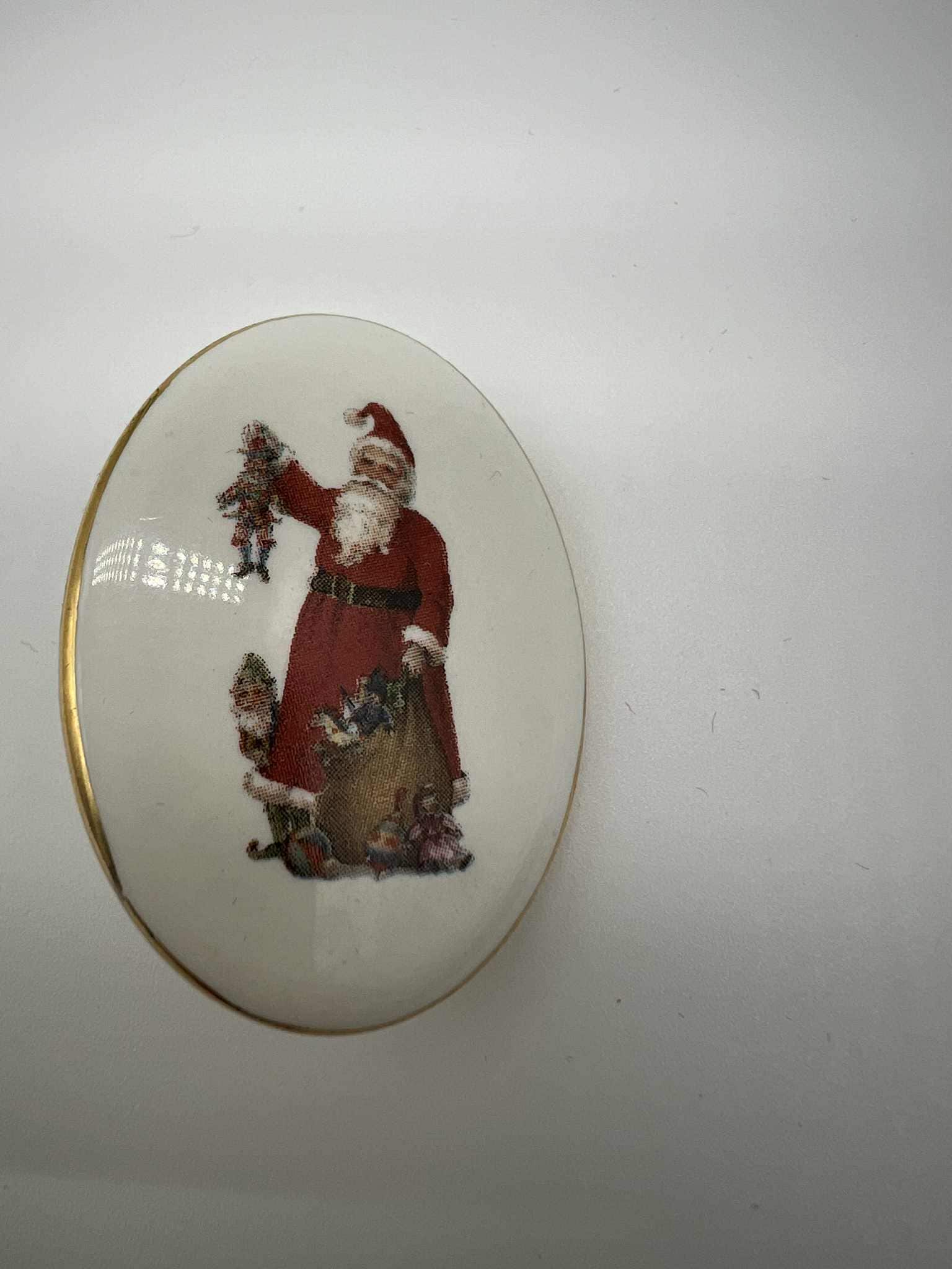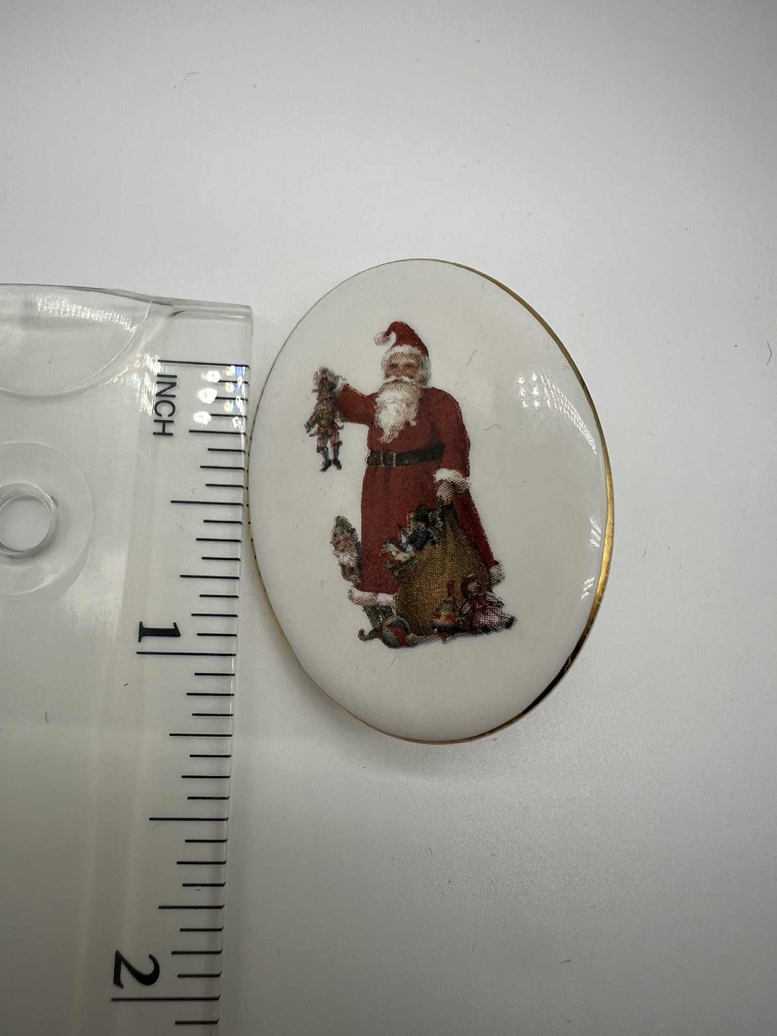 This charming vintage-style Santa cameo brooch features a classic Santa Claus illustration set beneath a smooth oval surface with a warm, nostalgic feel. The gold-tone edge adds a subtle touch of elegance, making it perfect for coats, scarves, sweaters, and festive holiday outfits. A lovely collectible for Christmas lovers and vintage holiday jewelry fans.