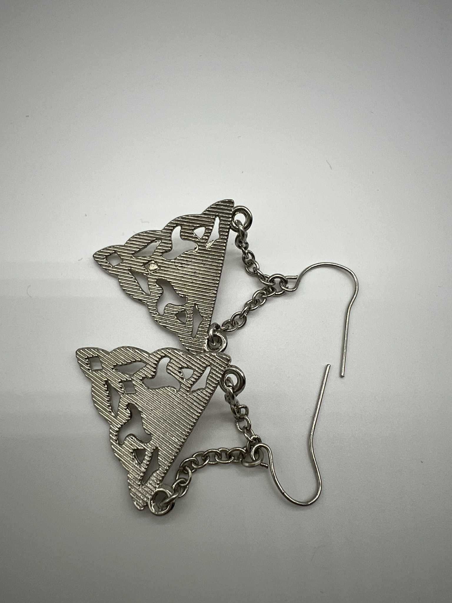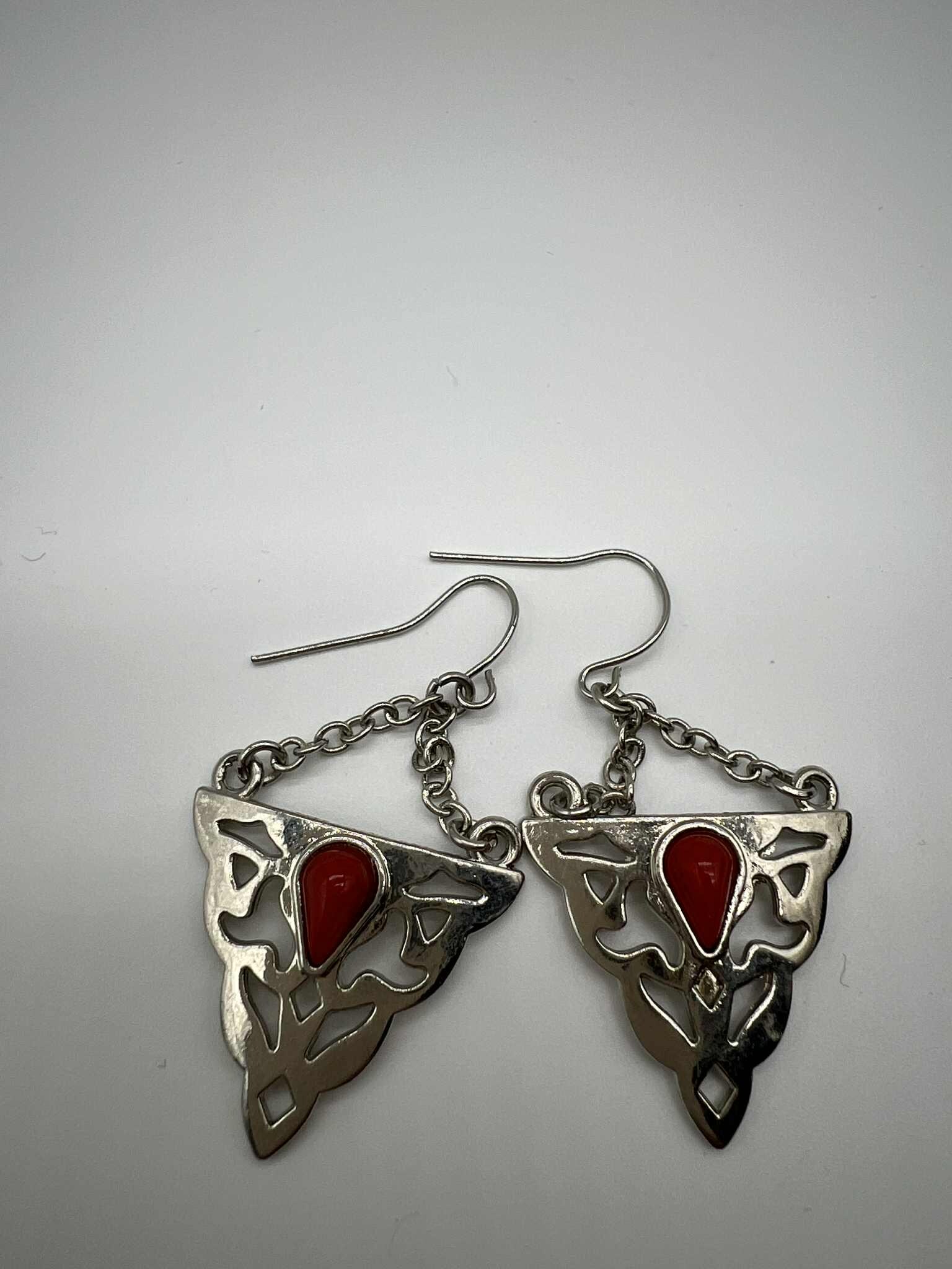 These stylish boho dangle earrings feature a unique triangular cutout design paired with a bold red accent stone for a striking tribal-inspired look. Lightweight with a smooth silver-tone finish, they’re perfect for everyday outfits, festivals, or adding an artistic flair to your accessories collection.